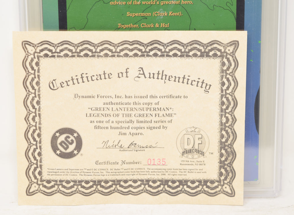 Green Lantern Superman Legend Of The Green Flame 1 DC 2000 CGC 9.4 Signed Jim Aparo DF