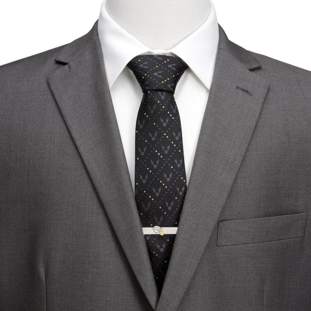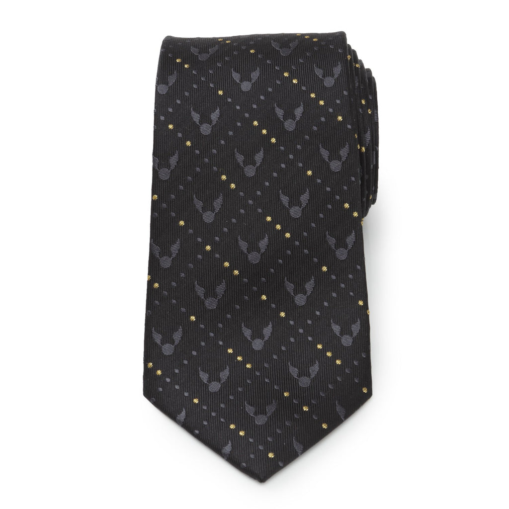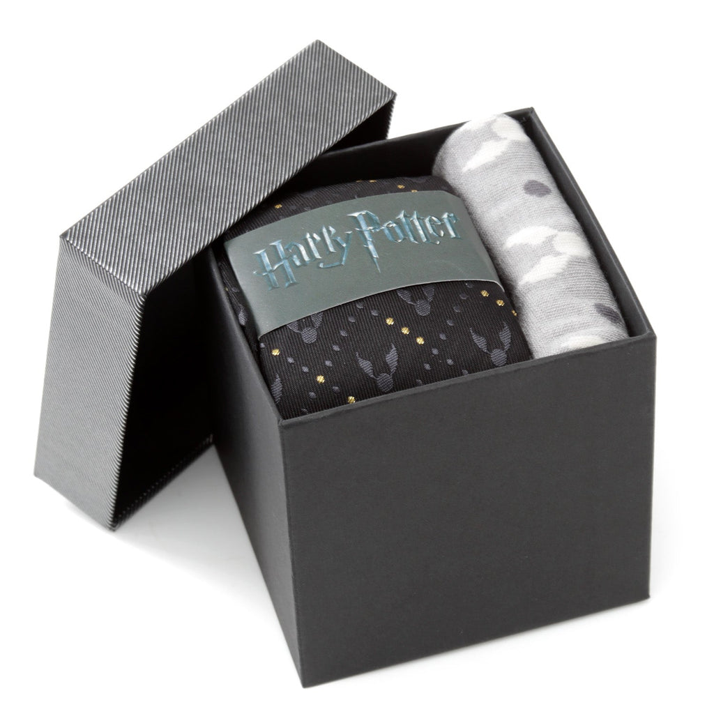 The ideal gift set for fans who know what the phrase "I open at the close" means, this Golden Snitch themed pairing elevates Harry Potter fandom to a whole other level. Delicate gold threads highlight simple Snitch icons on the 100% black silk necktie, and the gray and white socks are so comfortable they'll even wear them while playing in the Quidditch World Cup. Officially licensed by Warner Bros. Entertainment Inc.