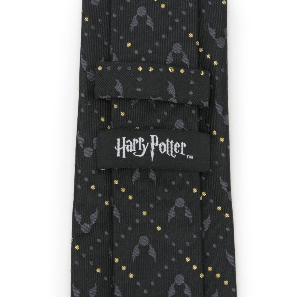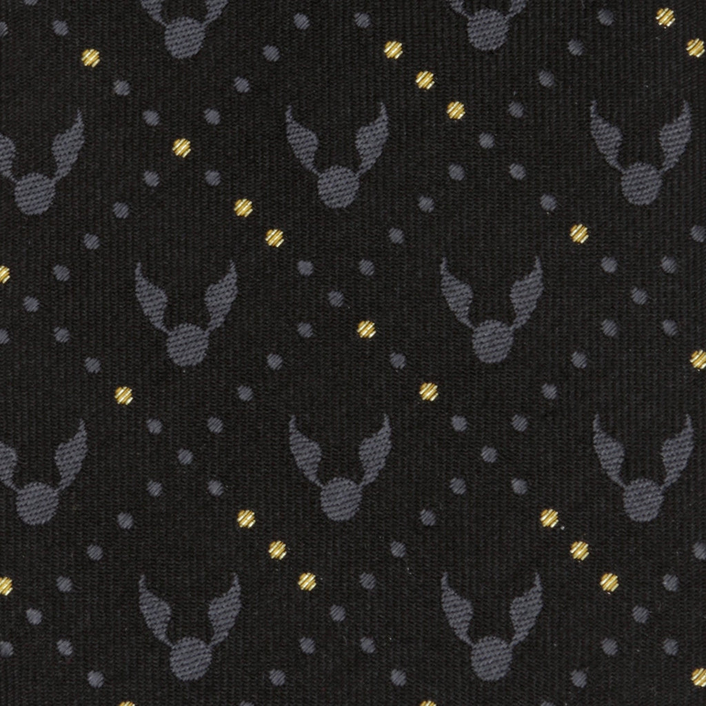 Dial up the maturity in your fan wardrobe with this elegant black and gold Harry Potter tie. Reverse-stitched Snitches fly across the surface, guided by a series of miniature gold dots to represent even more Snitches, and the Harry Potter logo can be found on the back. Officially licensed by Warner Bros. Entertainment Inc.