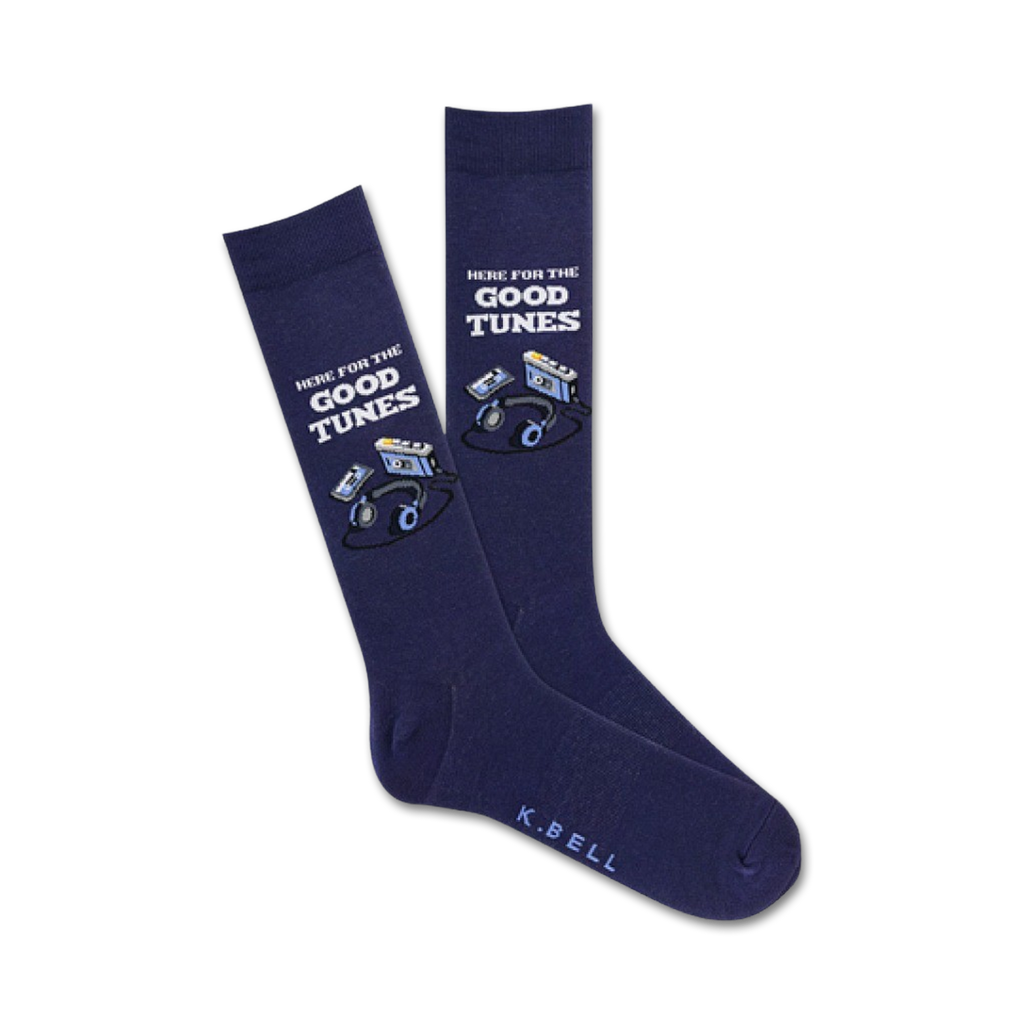 There's a 'tape' you when you wear these electric blue socks emblazoned with cassette tape designs that'll make you want to break out some tubular moves. They're a reminder that the good tunes will always be there for you, whether you're rocking out at a concert or just chilling at home. And if someone asks you what the deal is with your socks, tell them you're just 'Here for the Good Tunes.'