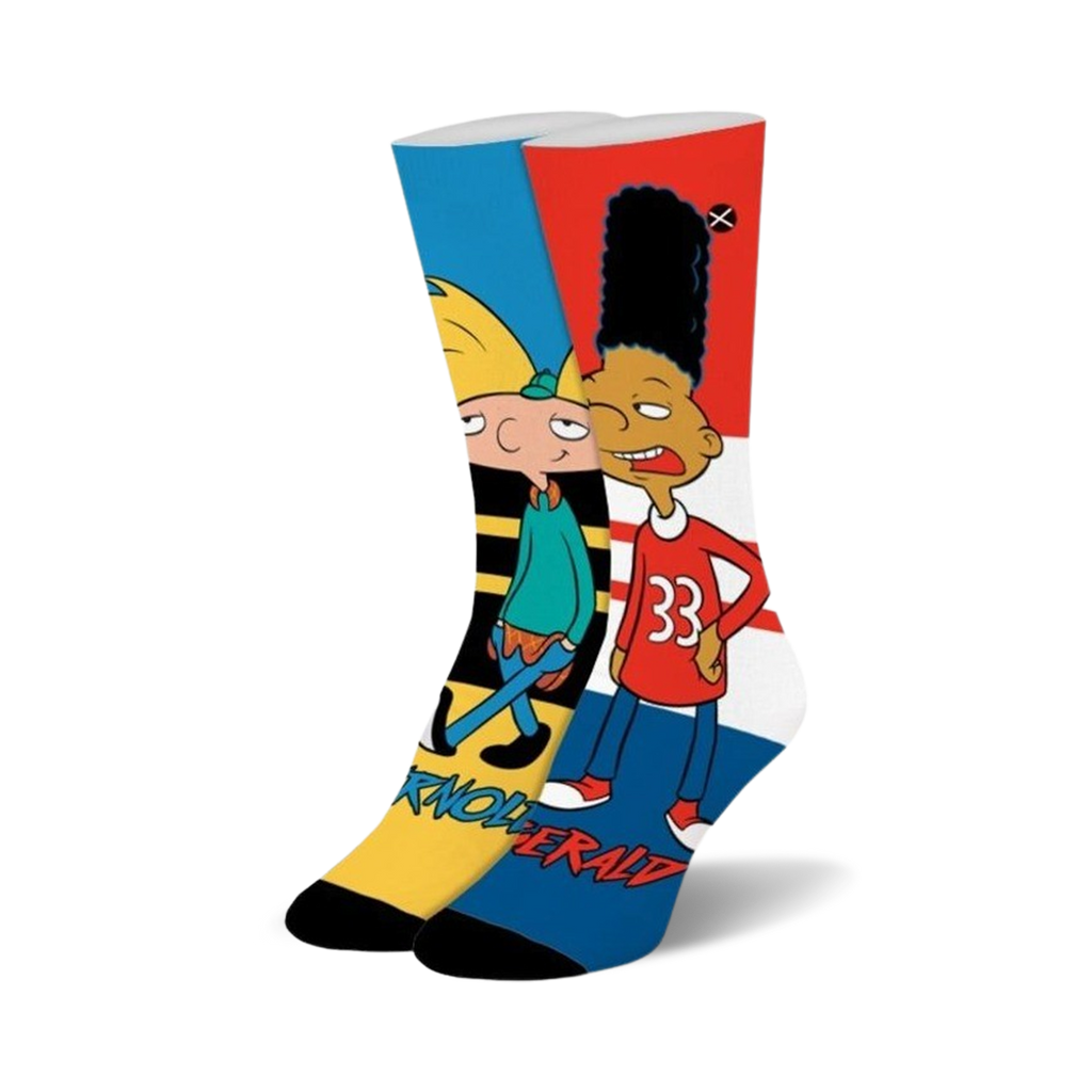 Sneak into the nicktoons universe with our Hillwood Boys crew socks! Featuring Arnold and Gerald, these socks will turn your feet into the coolest kids in the block. With their vibrant blue and yellow hues, prepare for a sock odyssey you won't soon forget!