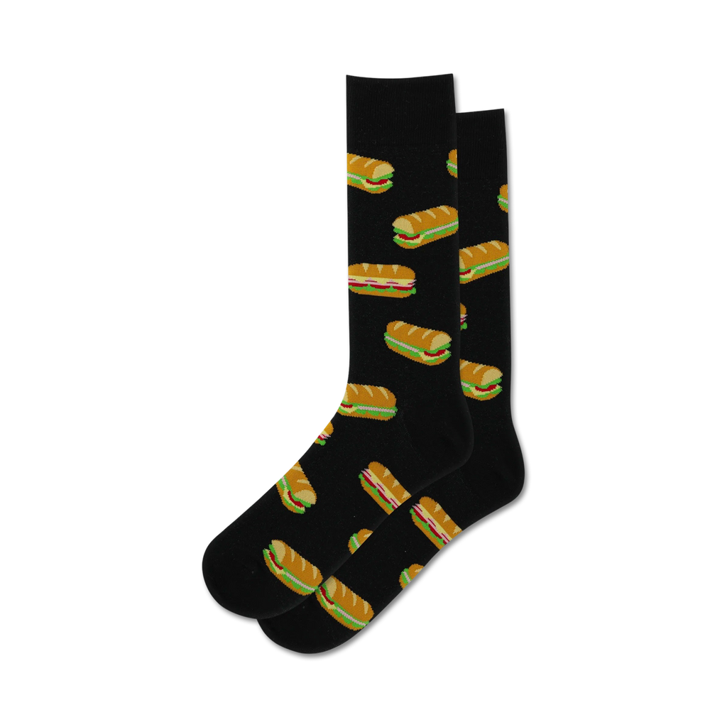These Hoagie Sandwiches crew socks are a sandwich maker's dream. Everybody likes a big hoagie, especially one with yellow mustard, green lettuce, red tomato, and brown meat. Wear a pair of these sandwich socks the next time you need something hearty. These make the perfect gift for that friend that always says "I'd eat a whole hoagie sandwich right now."