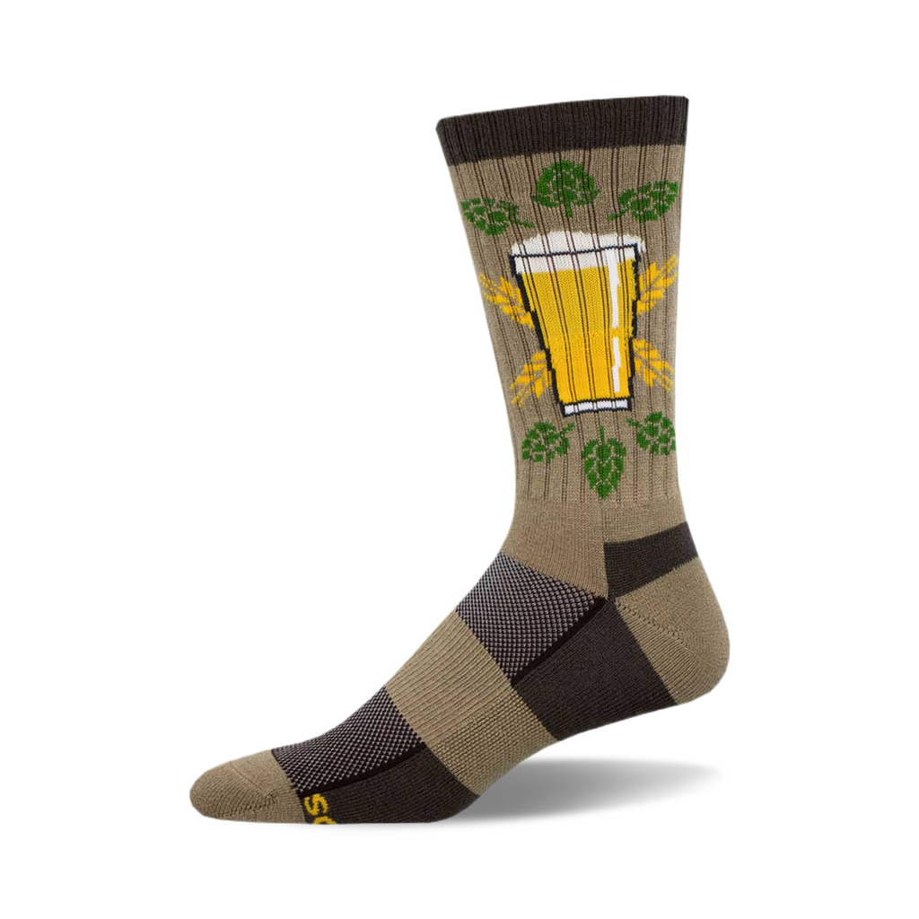 Pour yourself into a pair of Home Brew socks! Ideal for beer enthusiasts and whimsical sock lovers alike, these crew-length brown socks are adorned with a frothy beer mug and hop plant designs. Perfect for brewpub visits, casual Fridays, or lazy Sunday sips, they make every step a little hoppier. Ready to kick off your day with a splash of fun? Grab a pair today and let your feet do the talking at your next social gathering!