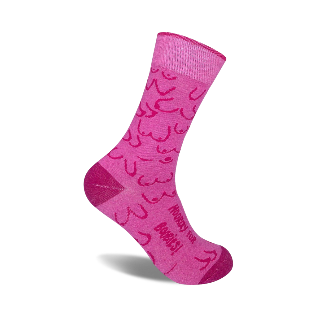 Hooray for Boobies socks are the perfect way to show your support for breast cancer awareness. These fun and funky socks feature a pattern of pink boobs and the words "Hooray for Boobies!" They will make you smile every time you wear them, and they're sure to start a conversation. Let's make breast cancer a thing of the past while rocking these boo-tiful socks!