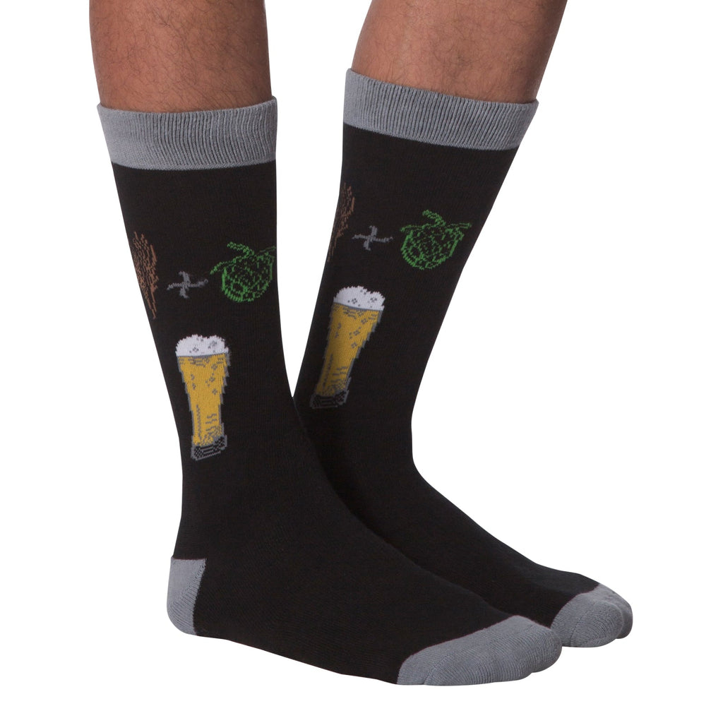 Hop into these cool socks and you'll BARLEY believe how comfortable they are! This refreshing pair of black and gray crew socks features a barley and hop symbol equaling beer. Perfect for anyone who enjoys a cold brew on a hot summer day. Bottoms up!