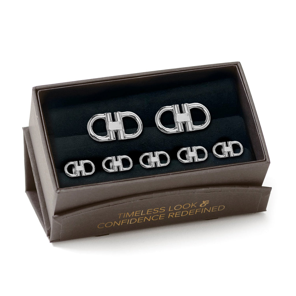 Designed with a clean, simple design, our Horse Bit Stainless Steel Stud Set adds a modern twist to a classic wardrobe staple. They are a versatile set that can be added to any outfit and for formal or casual events. Our stud set will stand up to wear and maintain its sleek, shiny look thanks to being crafted from durable stainless steel. A perfect way to show off your love of horses, the Kentucky Derby, or all things equestrian.