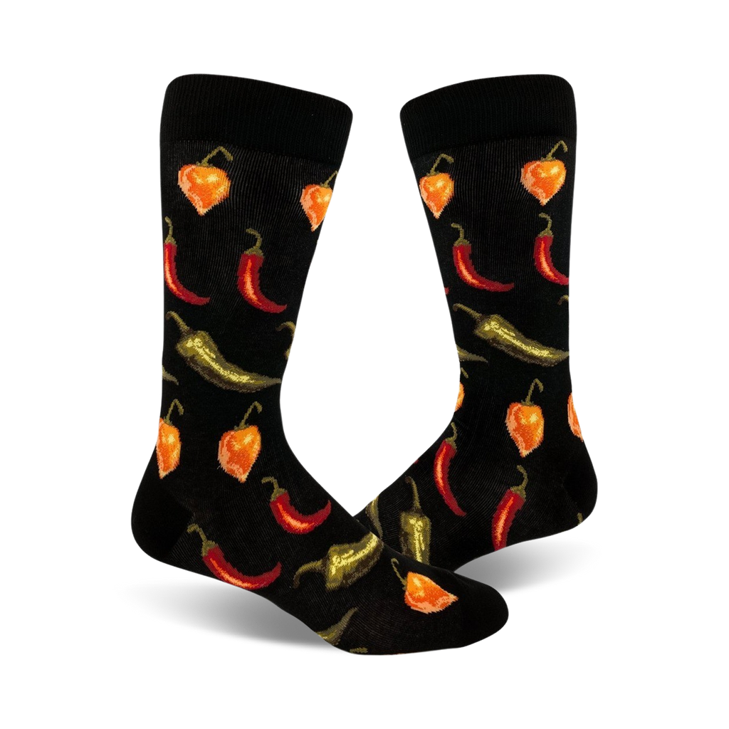 Caution! One look is all it takes for these Hot Chili Peppers socks to become the only socks you want to wear. These sizzling socks are sure to add a dash of fun to your shoe game. They're also great for taking the bite out of a long day. Your feet will be dancing a salsa all day long in these spicy socks. Go ahead, give them a try and get ready to feel the heat!