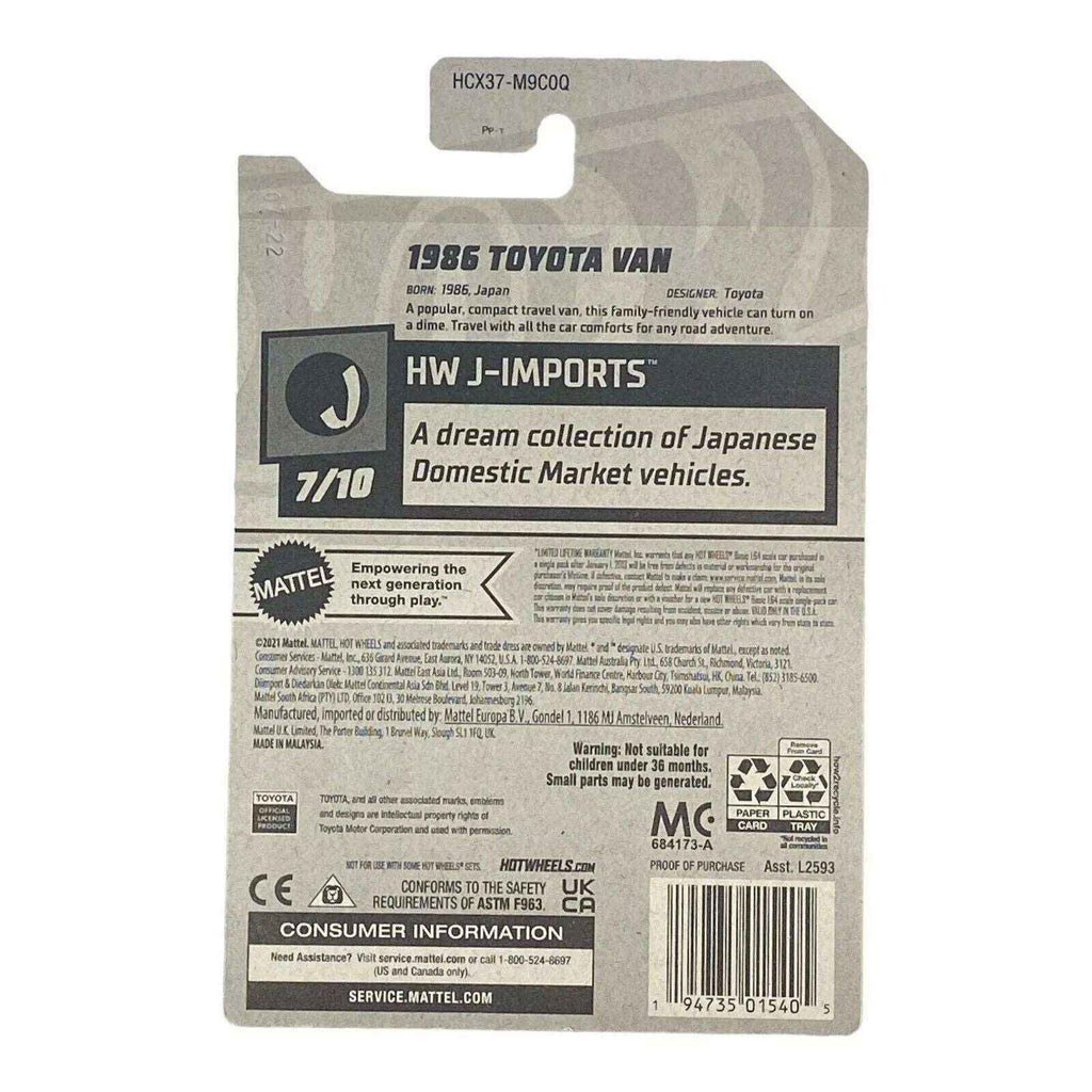 As part of a larger series, the Hot Wheels 1986 Toyota Van encourages collectors to seek out the other models within the J-Imports collection. Each piece features unique attributes, enhancing the overall experience for those who enjoy collecting die-cast models. The attention to era-specific details in this model is truly commendable.