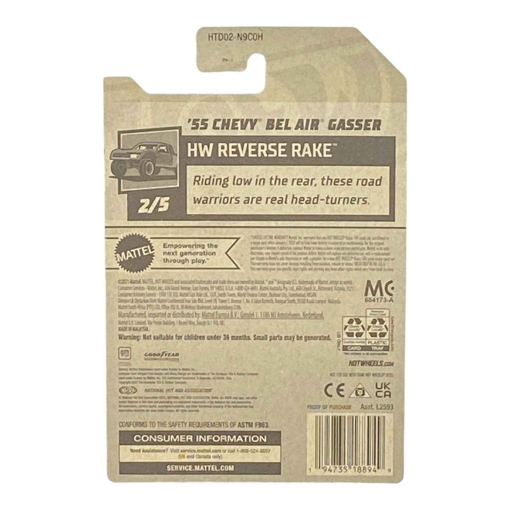 In addition to its stunning visuals, this model also represents a great investment for collectors. The Hot Wheels '55 Chevy Bel Air Gasser has shown to appreciate in value over time, especially when kept in mint condition. As part of the Reverse Rake Series, it occupies a special place in Hot Wheels' rich history.