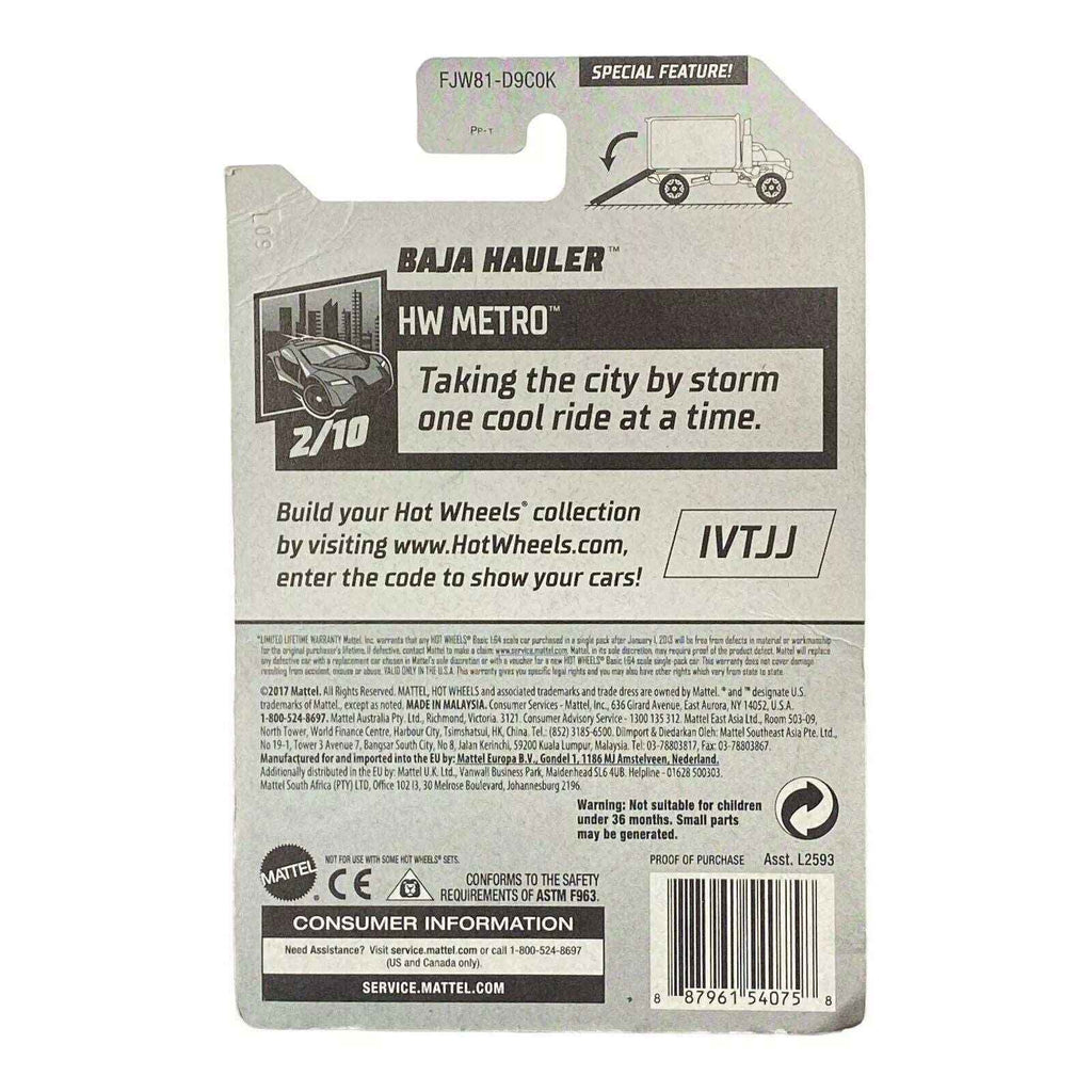 The Baja Hauler is a standout addition to the Hot Wheels lineup, designed for both speed and durability. This incredible model is perfect for any enthusiast looking to take their collection to the next level. The Baja Hauler embodies the spirit of off-road racing with its rugged build and striking design, making it a must-have for fans of all ages.