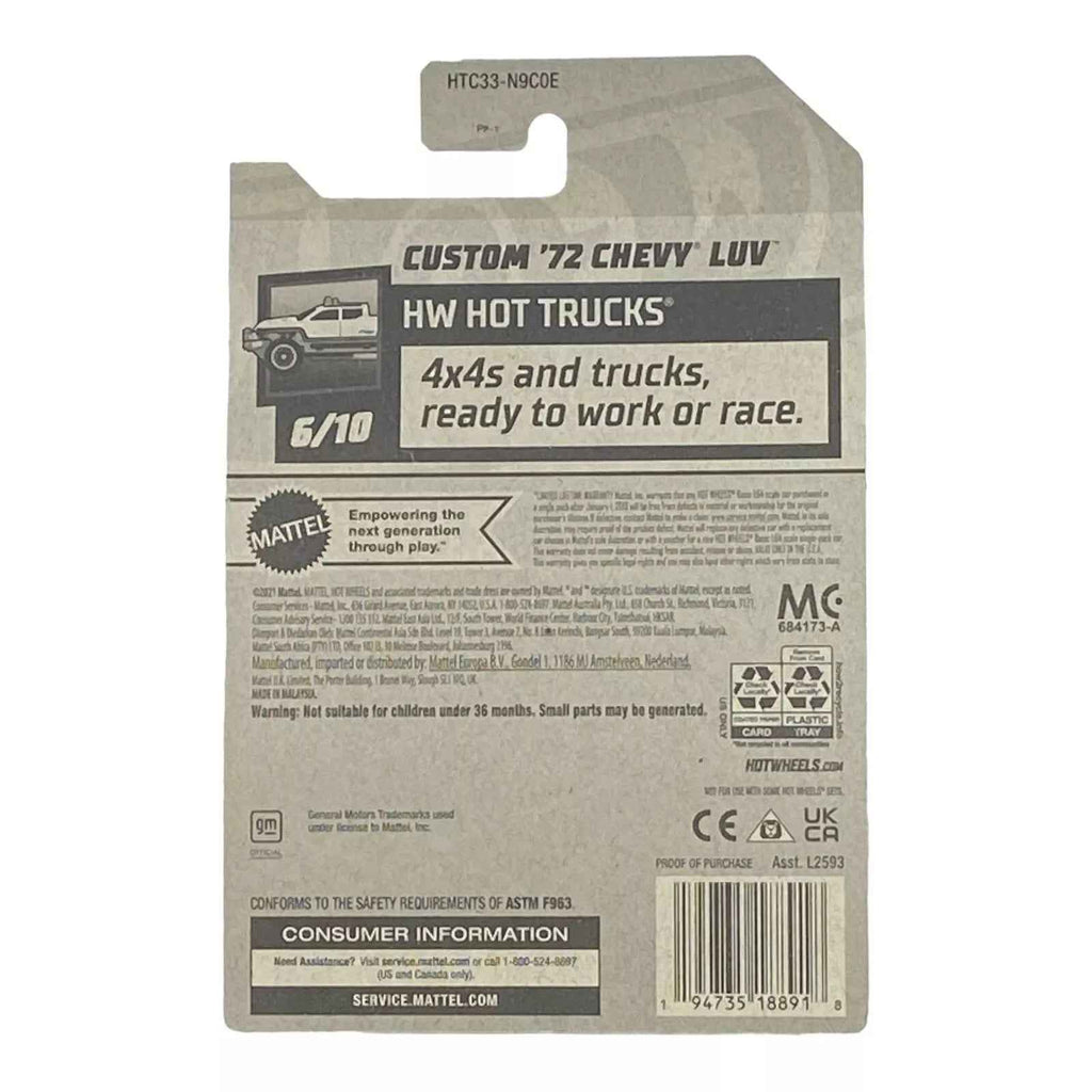 In addition to its stunning design, the Hot Wheels Custom '72 Chevy Luv is perfect for those looking to expand their collection of die-cast models. It pairs well with other vehicles from the Hot Trucks Series, making it a fantastic choice for both display and play.