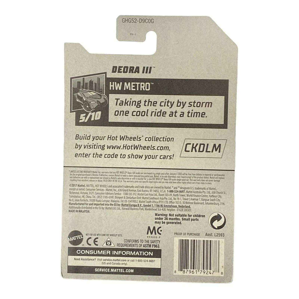 The Hot Wheels Deora III stands out as a vibrant and iconic model in the Hot Wheels collection. With its striking design and detailed craftsmanship, the Deora III is a must-have for collectors and enthusiasts alike. This particular model is part of the HW Metro Series, numbered 5 out of 10, which features a variety of unique designs that celebrate the urban landscape.