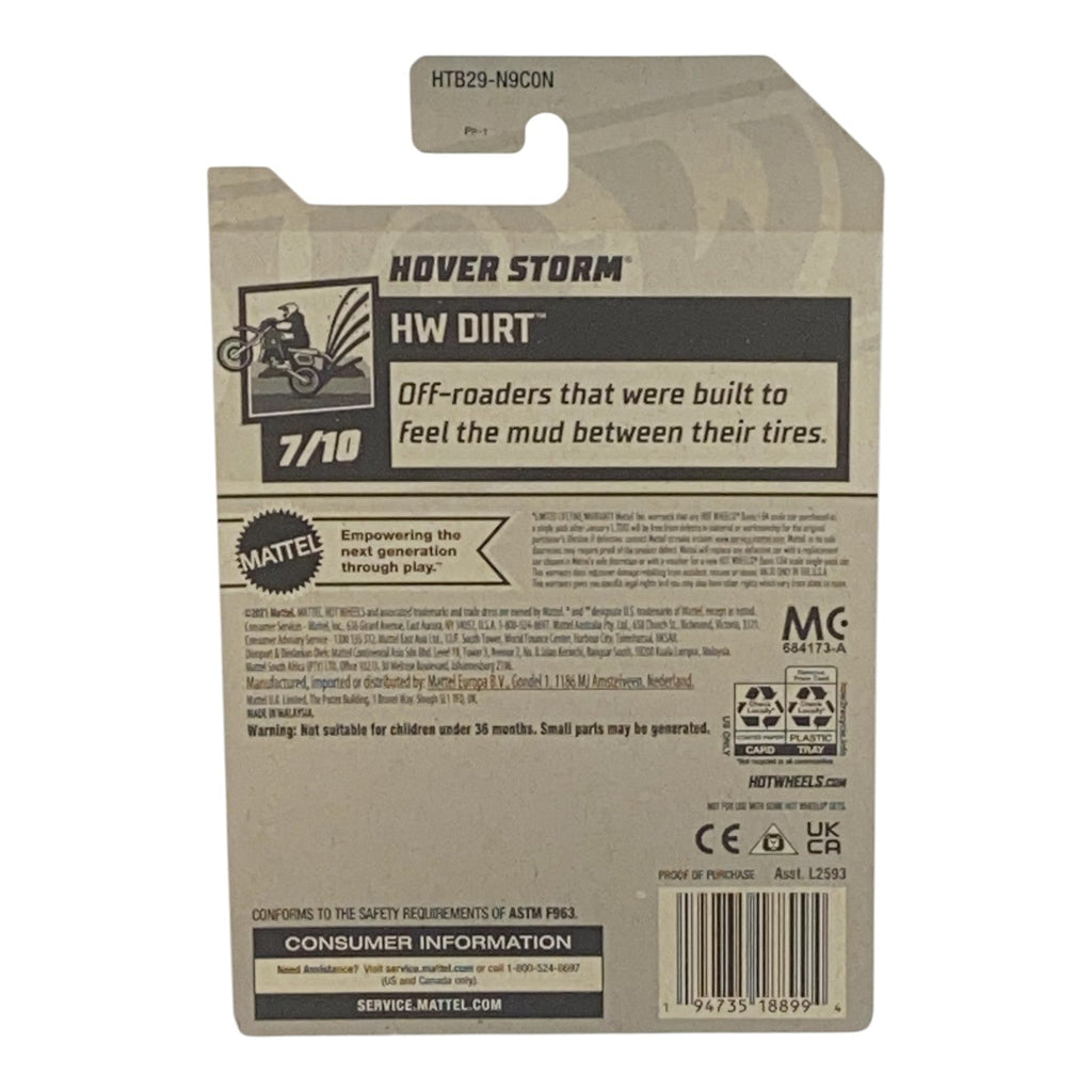 In conclusion, the Hot Wheels Hover Storm is more than just a toy car. It's an experience waiting to be unleashed. Don't miss your chance to own this outstanding model from the Dirt Series, 7/10 edition. Get ready to conquer the dirt and make your racing dreams come true!