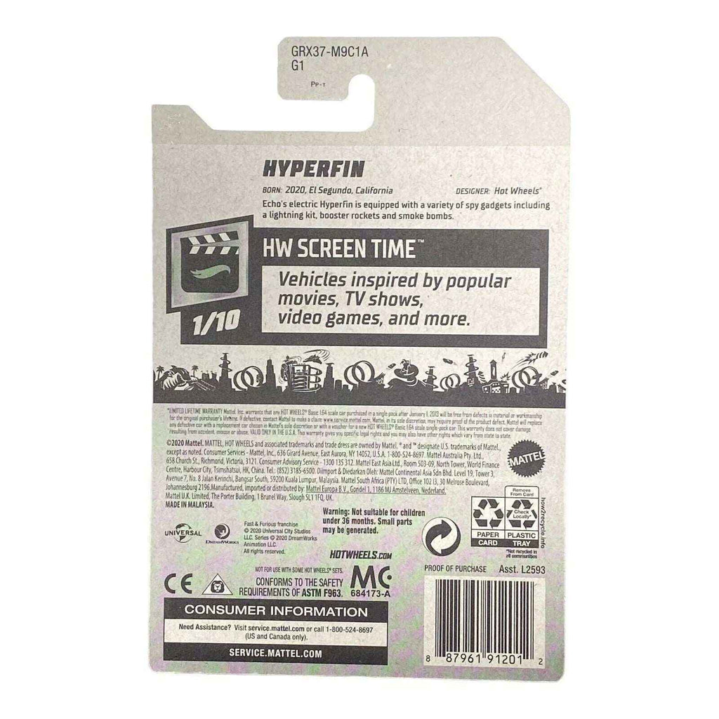 - Collector’s Item: As part of the Screen Time Series, the Hyperfin is perfect for collectors looking to expand their Hot Wheels collection.