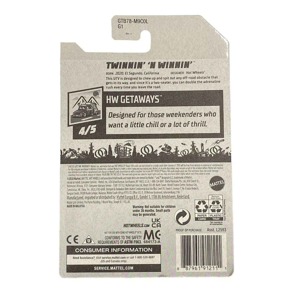 Hot Wheels Twinnin' N' Winnin' is an exciting addition to the HW Getaways Series that offers a thrilling experience for collectors and young car enthusiasts alike. This fantastic toy not only captures the imagination but also delivers hours of fun. Featuring a unique design and vibrant colors, it stands out among its peers and is a must-have for any Hot Wheels aficionado.