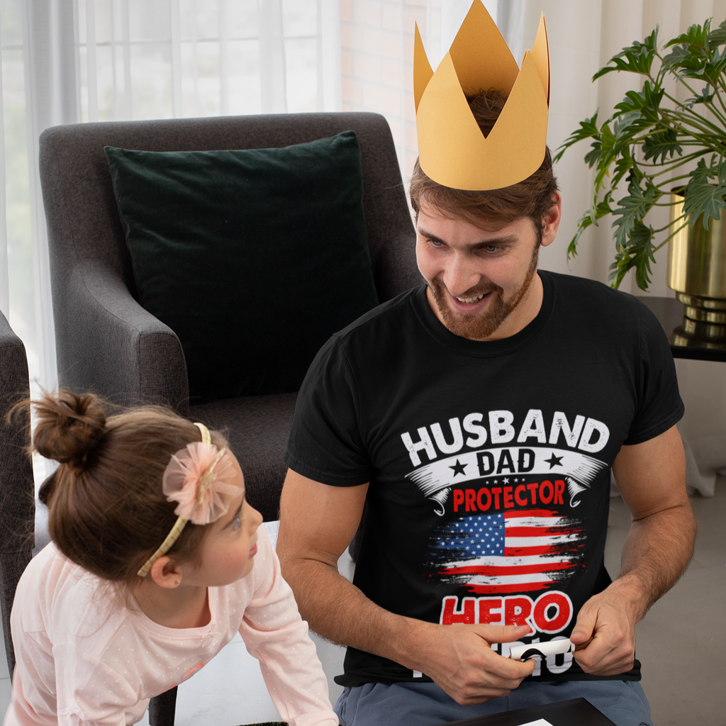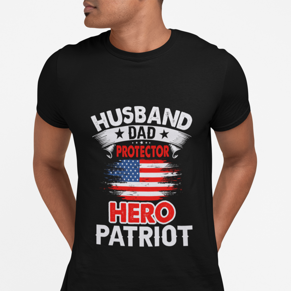 Husband, Dad, Protector, Hero, Patriot Short Sleeve Tee fits like a well-loved favorite. Super soft cotton and excellent quality print makes one to fall in love with it over and over again.