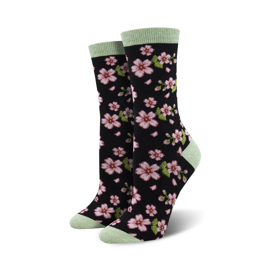 Brace yourself for In Bloom Bamboo socks, blooming with beauty and comfort. Bathe your feet in blossoms of pink cherry blossoms against a black backdrop. Feel the softness of bamboo caress your skin and keep your feet fresh and free all day. These socks are more than just socks; they're a celebration of nature's vibrant spirit. Get ready to step out in style and let the world bask in the glory of your cherry blossom feet!