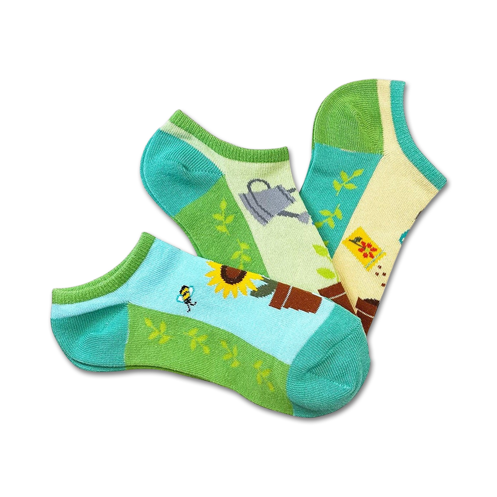 In the Garden 3-pack of novelty socks is your passport to a botanical wonderland. The sunflower, bee, watering can, and gardening tool motifs bring the beauty of nature straight to your feet. These no-show socks are like a mini garden party, perfect for the green thumb in your life!