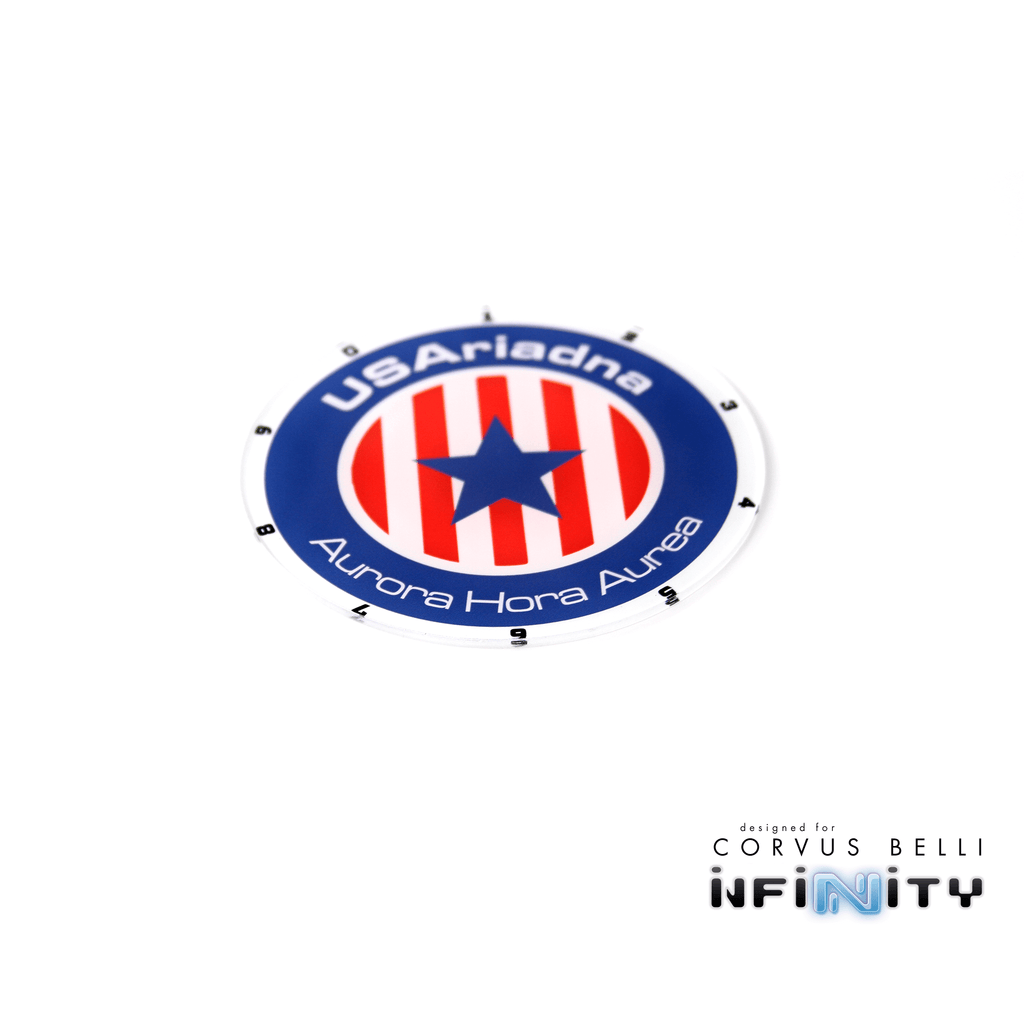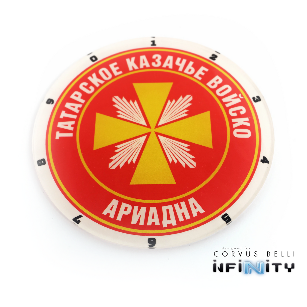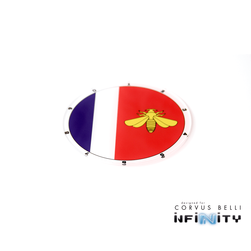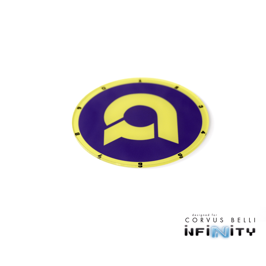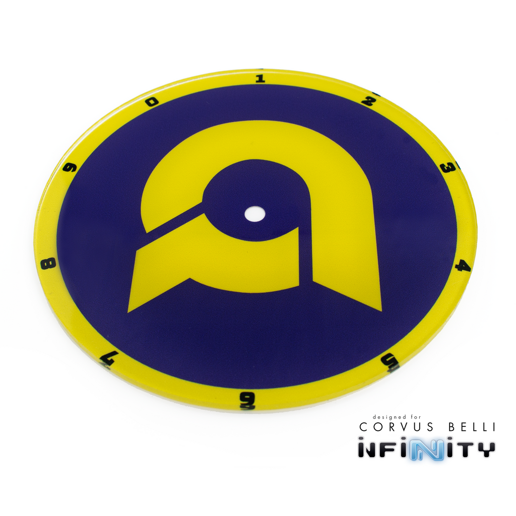 Represent your chosen faction whenever you throw smoke or cause an explosion with these faction specific full-color blast templates designed for Infinity:the Game.