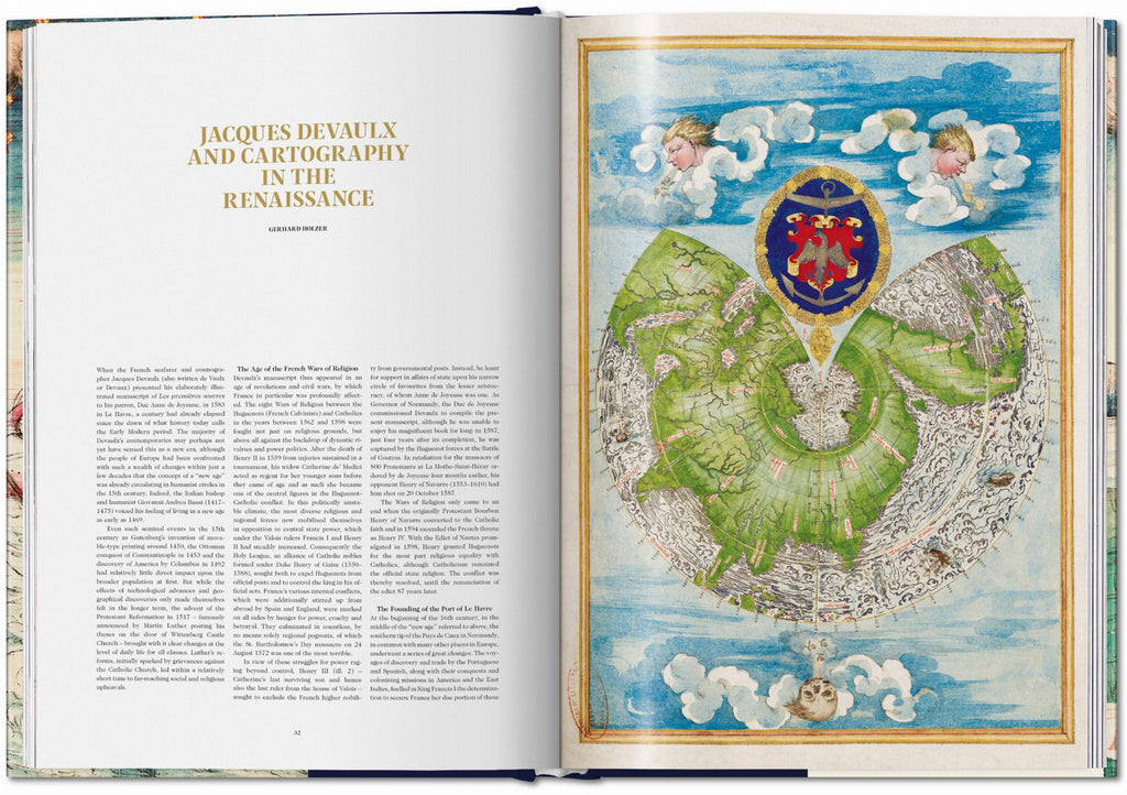 A fascinating insight into 16th-century seafaring and exploration, discover Devaulx’s sumptuous 1583 manuscript and encyclopedic reference for sailors. This edition reproduces the complete 31 folios in all their brilliant art and science, gathering color illuminations, observations, charts, and oceanic maps—a magnificent maritime showpiece.
