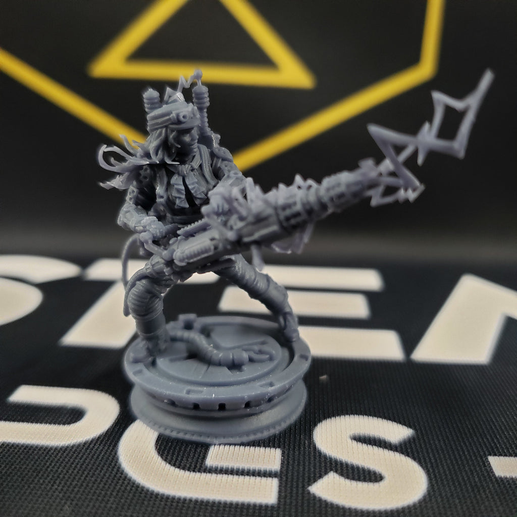 All our 3D printed minis come free of supports and fully cleaned and cured. They are supplied unprimed & unpainted, and they ship assembled unless the miniature has several interchangeable accessories included with it, or the customer requests it to be shipped unassembled. Stock photos are 3D renders of the models, and are not the color we typically print in (we use Navy Grey as our default). Any additional photos on a mini page are going to be actual photos of the models we print!