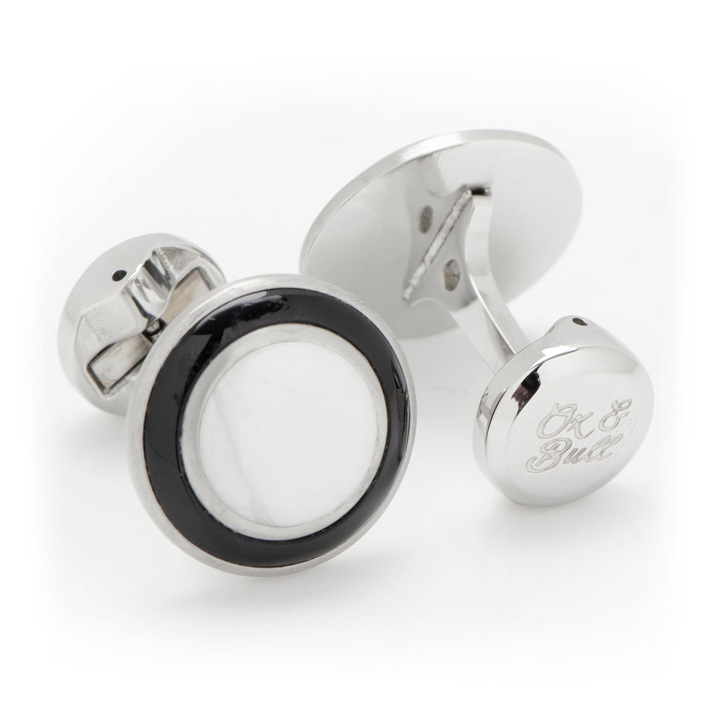 Our Jade with Onyx Ring Stainless Steel Cufflinks feature jade and onyx inlaid in a shiny metal setting. The complementary, semiprecious gemstones in this set symbolize good luck and strength, which is exactly how you'll feel as soon as you put them on your favorite shirt. Our cufflinks will stand up to wear and maintain their sleek, shiny look thanks to being crafted from durable stainless steel.