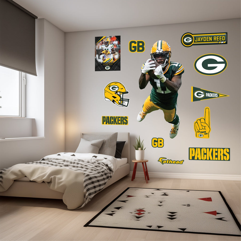 Imagine your living room or sports den enhanced by the lifelike presence of Jayden Reed. Whether you're hosting game day gatherings or simply enjoying your personal space, this decal adds a touch of authenticity and excitement. Its durable, scratch-resistant finish ensures it stays impeccable even in high-traffic areas. Let this RealBig decal inspire your space with the thrill of the NFL, offering a customizable and commitment-free way to express your team spirit.