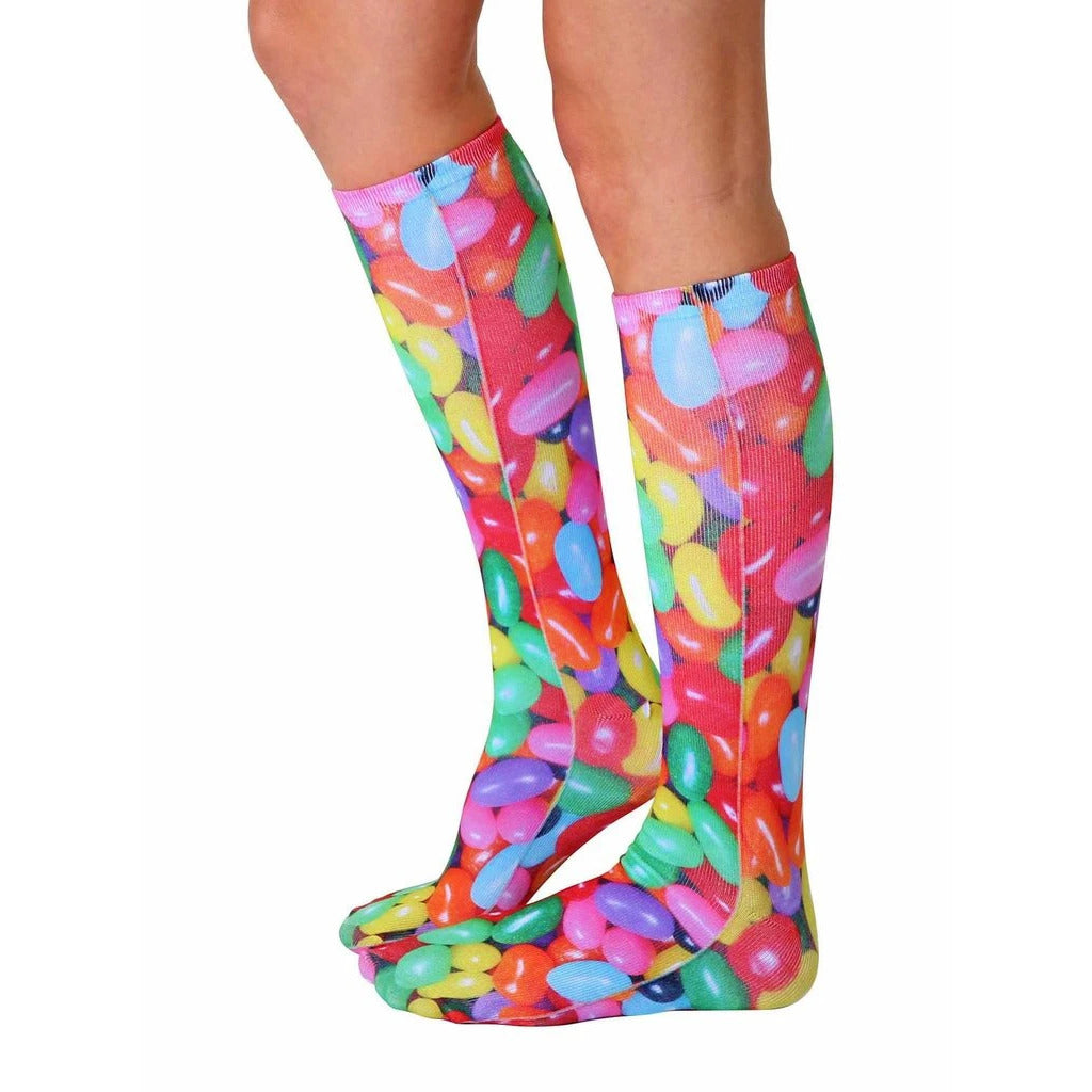Jelly Bean Bliss: These knee-high socks are covered in a vibrant spread of colorful jelly beans, jumping from the toes right to the top. A burst of sweetness and fun for both men and women, these socks put you in a joyful mood while also adding a touch of sugary fashion to any ensemble. It's the perfect reminder that even in life's toughest moments, we can always use a shot of sugary joy.