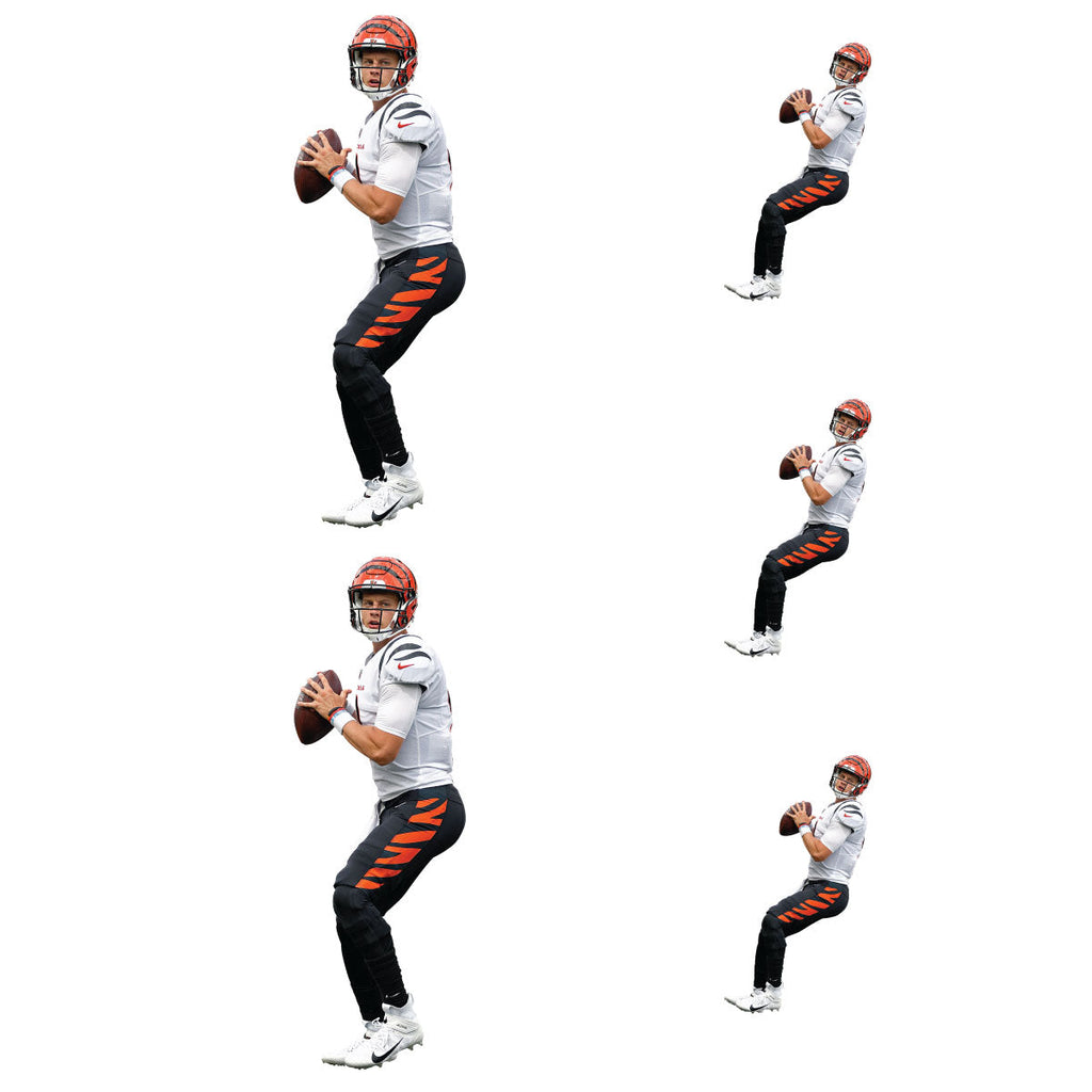 Elevate your game day atmosphere with the Joe Burrow - 5 Player Minis! These reusable vinyl decals are more than just decorations; they're a testament to your Cincinnati Bengals pride. Imagine transforming your space into a vibrant tribute to Joe Burrow's electrifying plays. With two 5"x7" and three 2.5"x4" decals, you have the flexibility to create a dynamic display on any smooth surface, whether it's a bedroom wall, office, or game room. The thick, high-grade vinyl promises durability, resisting tears and fading, ensuring your support for the Bengals stays strong all season long.