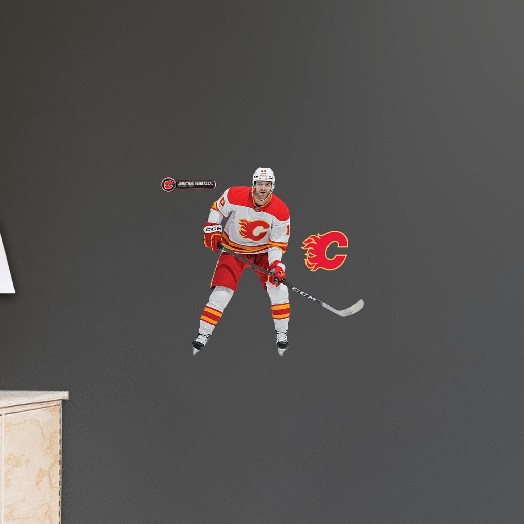 Transform your space into a tribute to your favorite NHL star with the Jonathan Huberdeau RealBig Collection - Official NHL Calgary Flames Reusable Vinyl Wall Decals. These decals are crafted from premium vinyl, ensuring vibrant colors that capture the excitement of the game. With a low-tack adhesive, they are easy to apply, reposition, and remove without leaving any residue, making them perfect for fans who love to change up their decor without the hassle.
