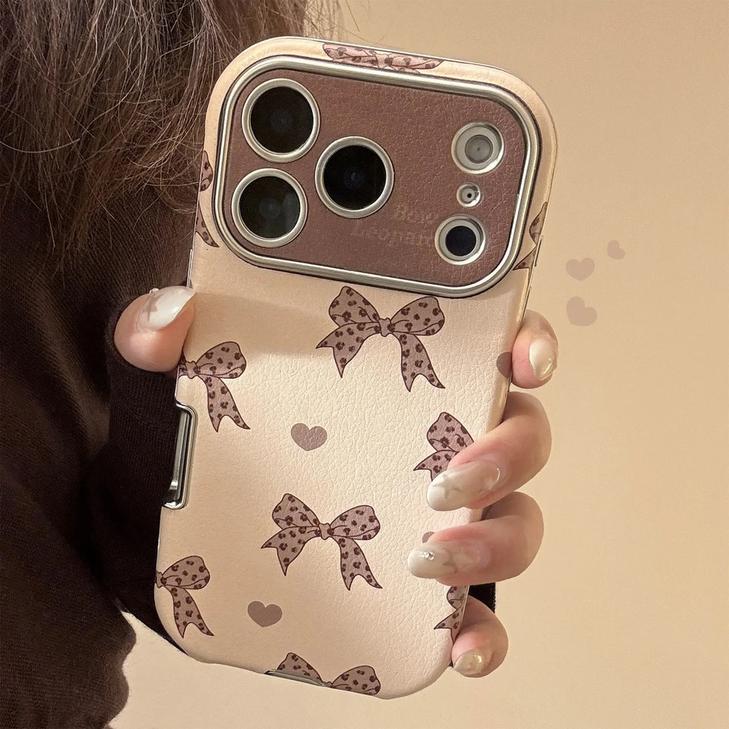 Korean Cute Leopard Print Bowknot Leather Texture Phone Case For iPhone