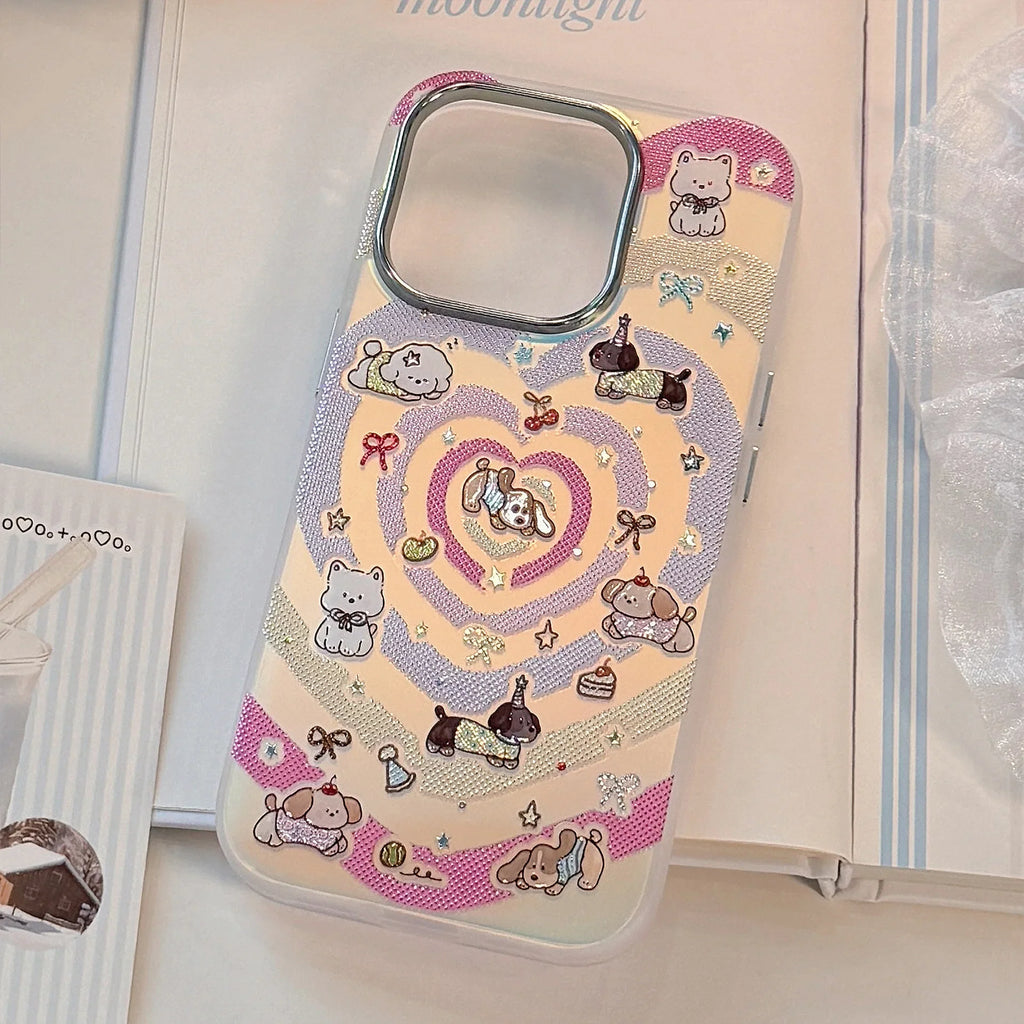 Protect your iPhone with charm and style using the Korean Gilding Laser Colorful Love Heart Cartoon Puppy Phone Case. Its vibrant holographic finish catches the light beautifully, while the adorable puppy and heart design add a playful, loving touch. Lightweight yet sturdy, this case shields your phone from scratches and everyday bumps without bulk. Make your device stand out and express your fun personality with this eye-catching, protective accessory.