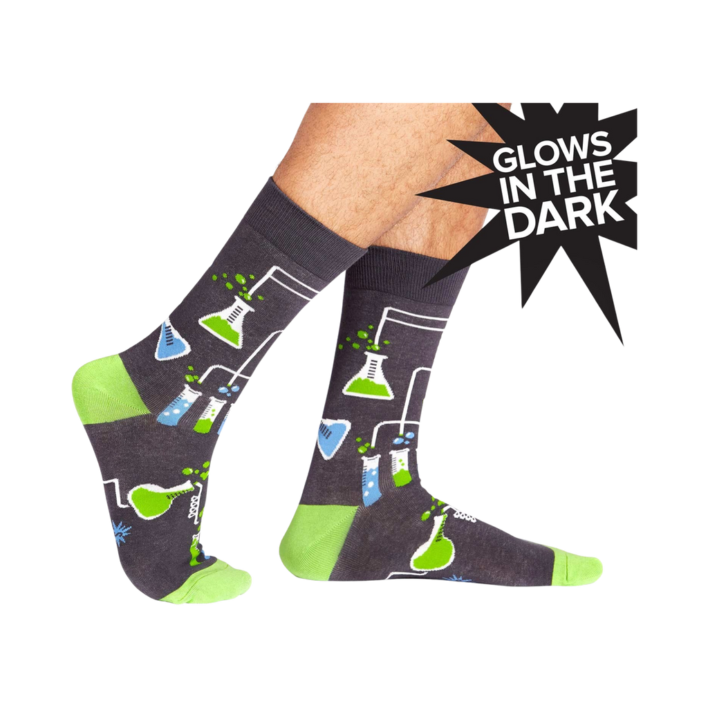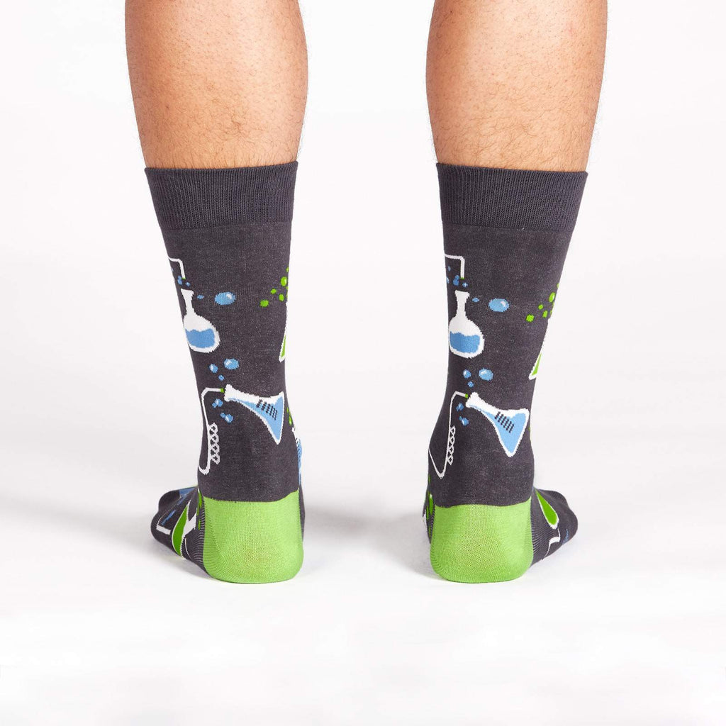 Wear these Laboratory beaker socks and get ready to mix and mingle! These gray crew socks are covered in beakers and test tubes filled with mysterious liquids. Perfect for any chemistry lover, they'll remind you that even the smallest experiments can lead to big results.