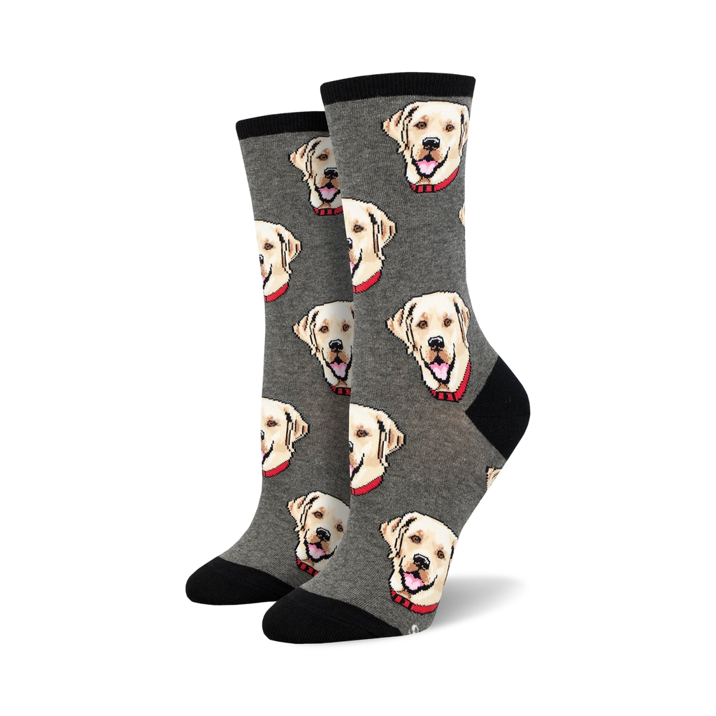Calling all dog lovers! Show your Labrador obsession with these crazy crew socks! These socks are the perfect way to get a smile from fellow canine lovers. With gray cotton and a vibrant pattern of Labrador heads in different poses, these socks have a black toe and heel. Be sure to wear them to your next dog park visit to see who notices first! Stay paw-some and protect your feet while you're at it!