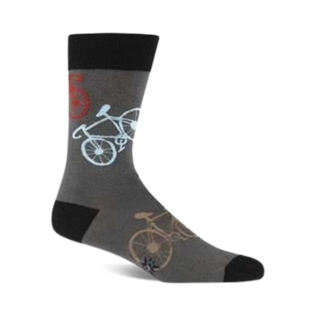 Take a joy ride and enjoy the outdoors. Nothing is better than a bike ride in the morning! These refreshingly cool crew cut socks feature several different bicycles printed all over on a slate gray background. I'll be honest with you. I have tried to think of a good bike pun but I am just two-tired.