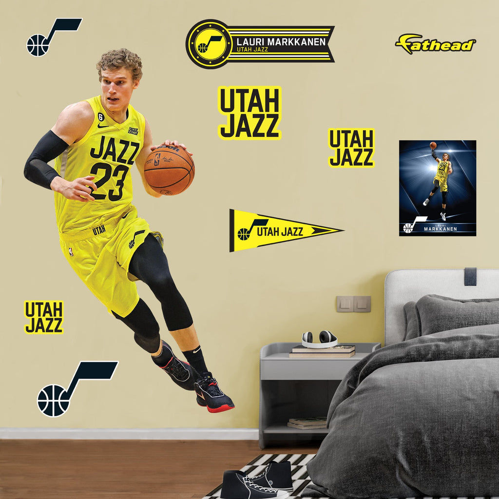 Transform your space with the Lauri Markkanen RealBig Collection, featuring official NBA Utah Jazz reusable vinyl wall decals. These vibrant decals bring the excitement of the game right into your home, allowing you to showcase your fandom in style. Crafted from premium vinyl, they offer a durable, scratch-resistant finish that keeps colors vivid and true, even in high-traffic areas. The precision die-cut edges ensure a seamless look, making your walls come alive with the spirit of the Utah Jazz.