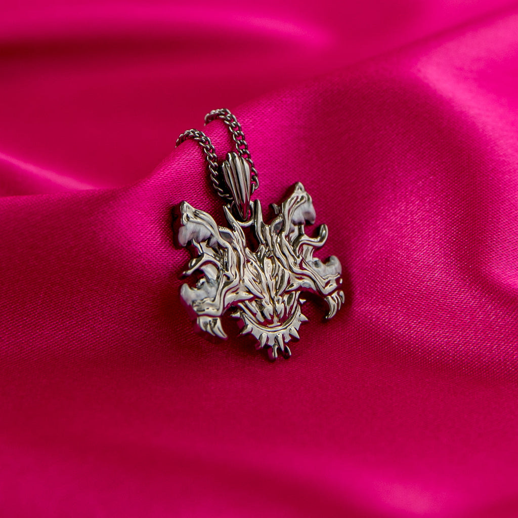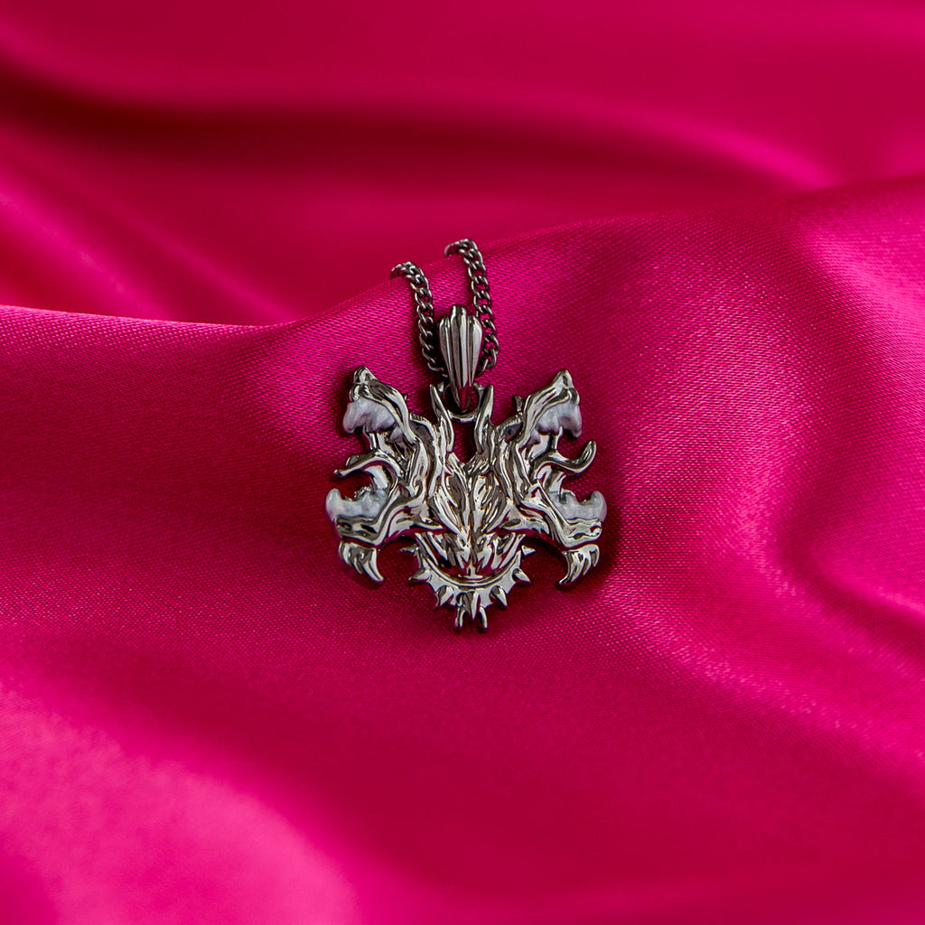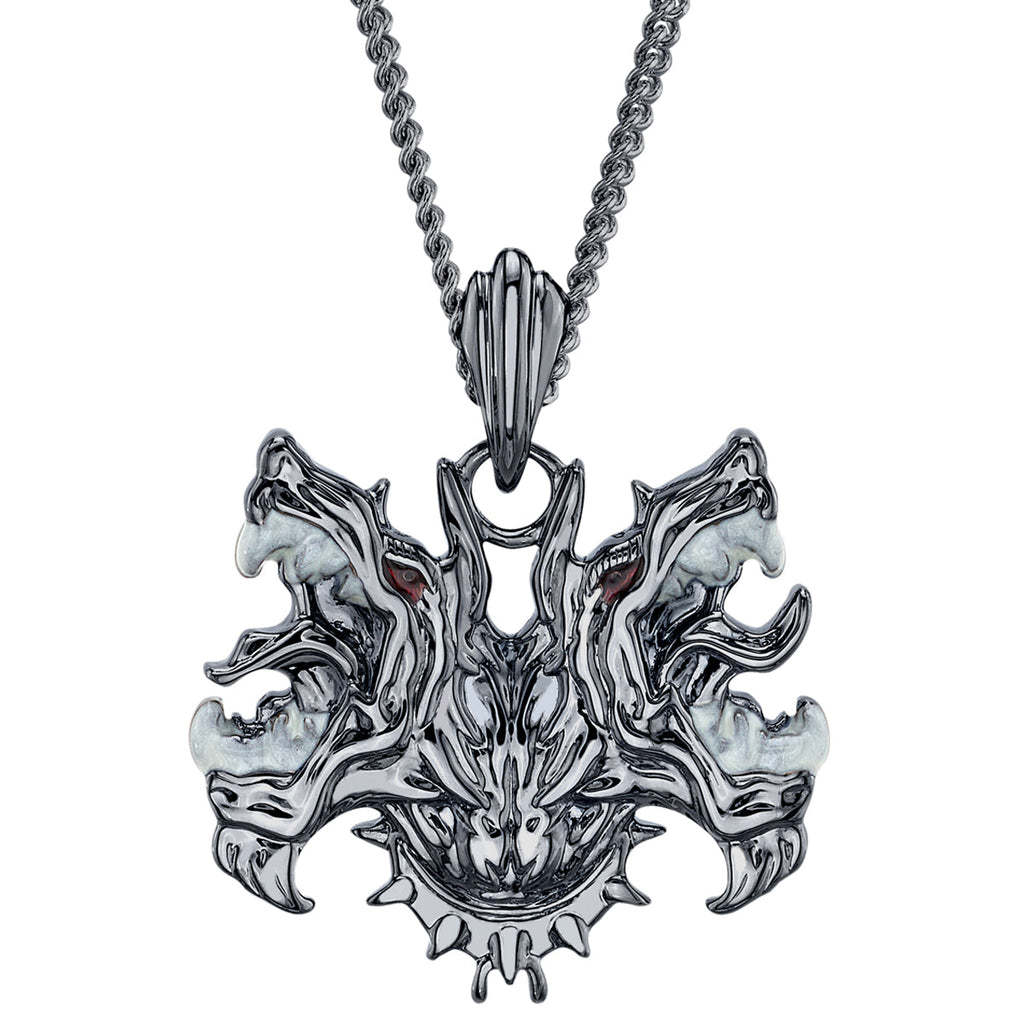 Handcrafted in nickel-free artisan brass and plated in black rhodium, the Vi Murk Wolves Necklace embodies fearsome strength and grit. Sculpted in undulating three-dimensional relief, the double-headed emblem features two snarling beasts, each with fierce white enamel teeth and fiery red enamel eyes, capturing Vi’s untamed spirit. Hanging from a black rhodium plated adjustable curb chain, the dark finish contrasts sharply with the vivid enamel accents, making this pendant a bold testament to resilience and defiance, perfect for anyone ready to face the world head-on.