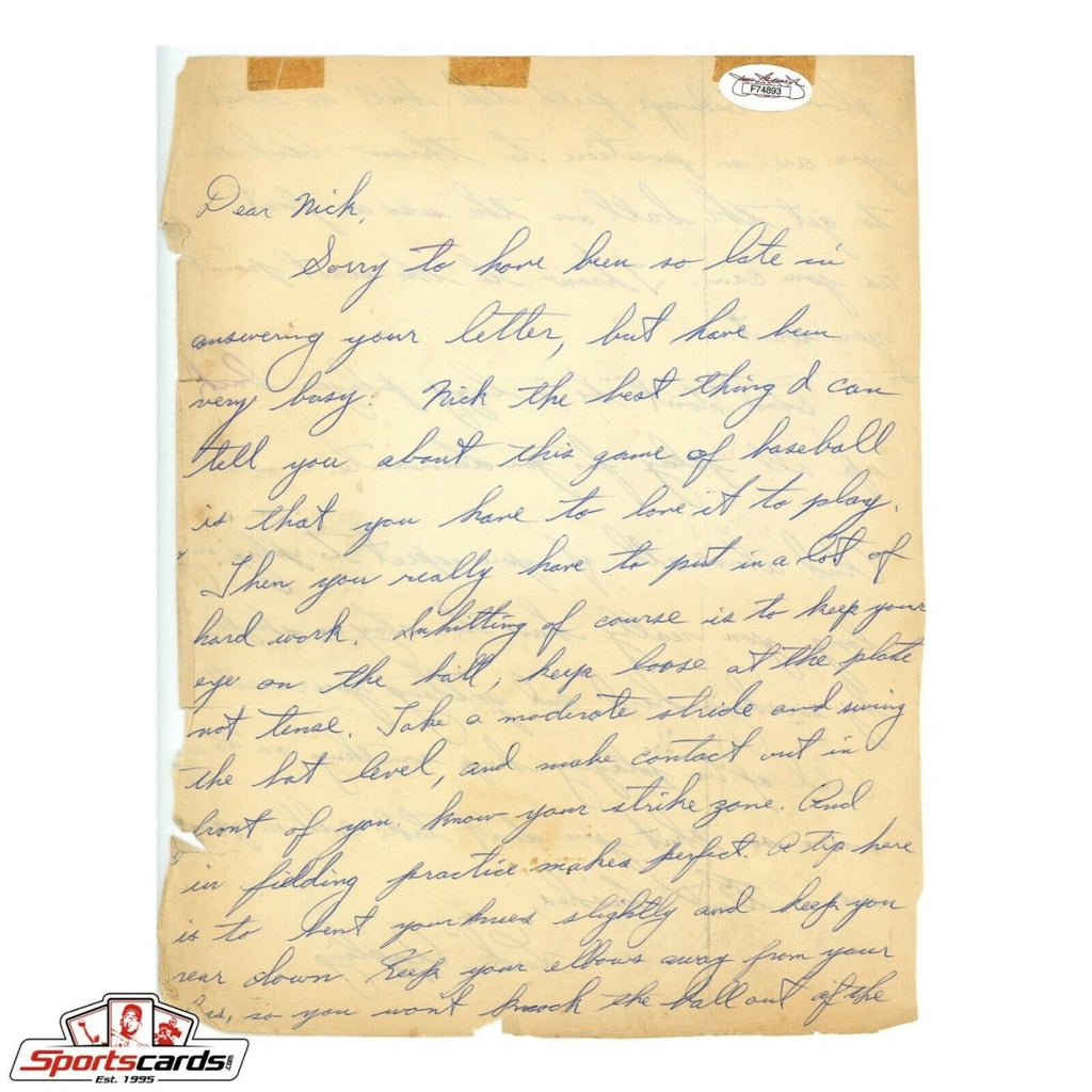 Double-sided handwritten letter by the Chicago White Sox hall of famer. JSA authentication sticker affixed to the front page, sticker only. Please see images to view item condition.