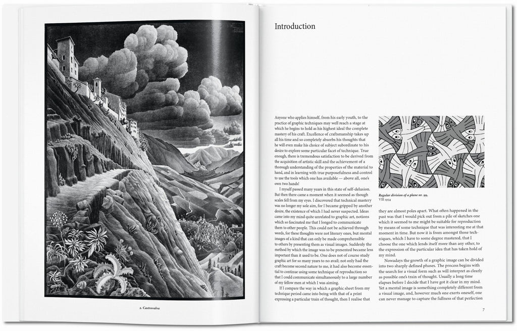 From impossible staircases to tessellated birds, explore the graphic genius of M.C. Escher, master of quirky vantage points, mathematical puzzles, and the transition from paper flatness to illusory volume. This essential introduction presents key Escher works, exploring the evolution of a unique pictorial style that has captivated scientists and hippies alike.