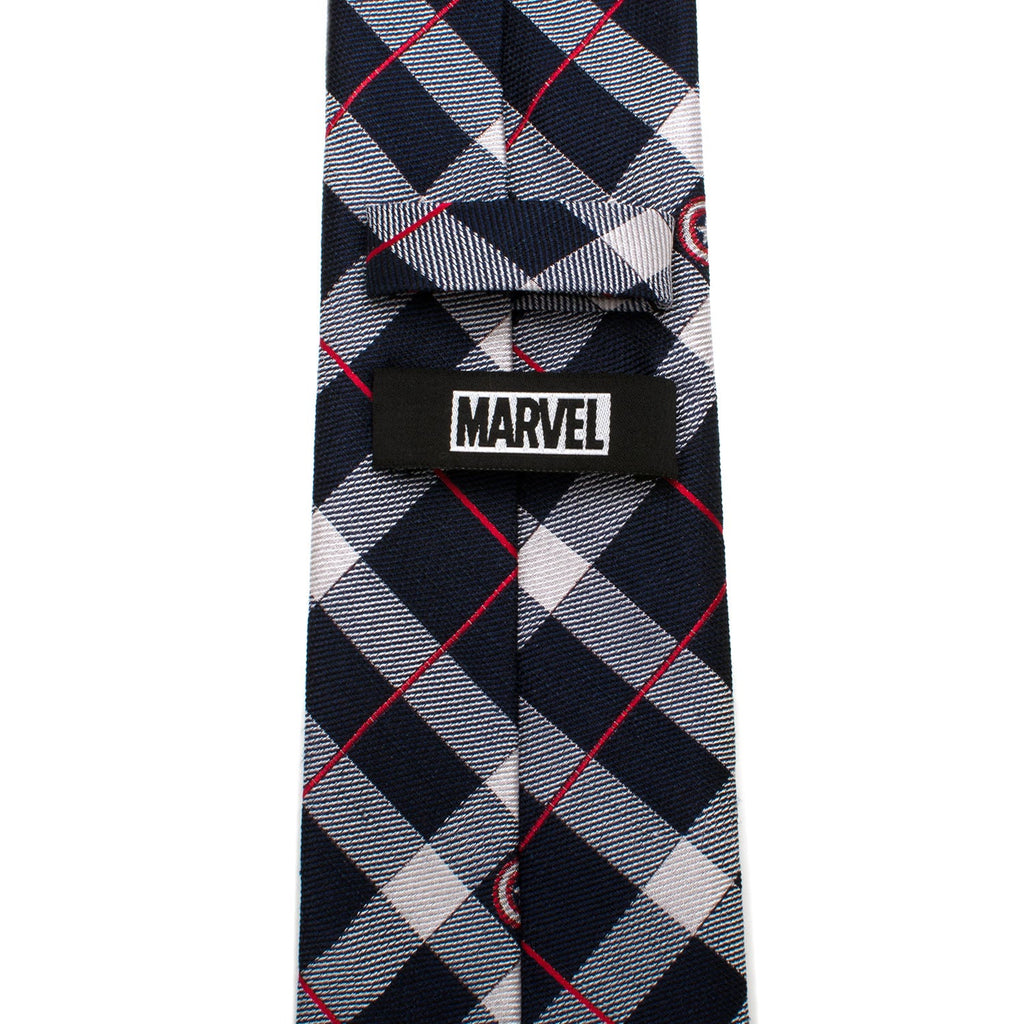 Stylish, silk, and very professional with a Marvel flair, this tie features Captain America's shield motifs within a red, white, and blue plaid pattern. This tie will maintain its shape and hold a perfect knot thanks to being crafted with durable yet soft 100% Silk. A classy yet fun pattern that can be worn in a professional setting. Pairs well with any of our Captain America products. Officially licensed by Marvel.