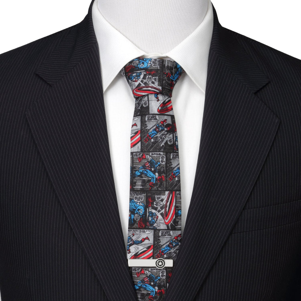 It's a throwback to the days of reading comics! This gray tie features classic images from Captain America comic panels. Captain America's colors pop off the tie and draws the eye. Brighten up your attire with the First Avenger! Officially licensed by Marvel.