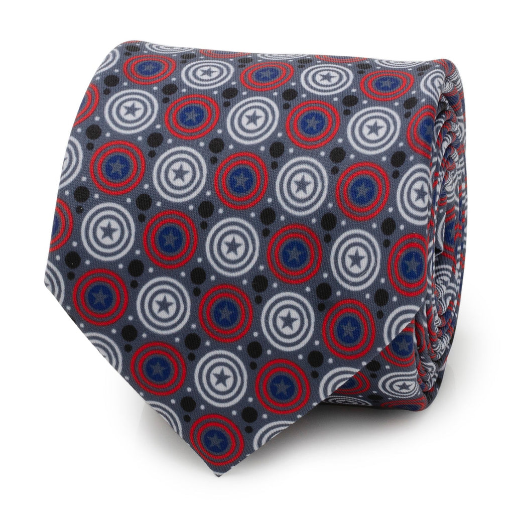 Defend your sense of style with our Captain America Gray Dot Men's Tie featuring his iconic shield. Both in full color and white, this gray printed tie uses Cap's shield as a play on a dot pattern. Imbued with the power of superhero craftsmanship, our 100% Polyester tie is built to withstand the mightiest battles while making sure you'll always maintain your sharp, heroic look. Pairs with any of our Captain America products. Officially licensed by Marvel.