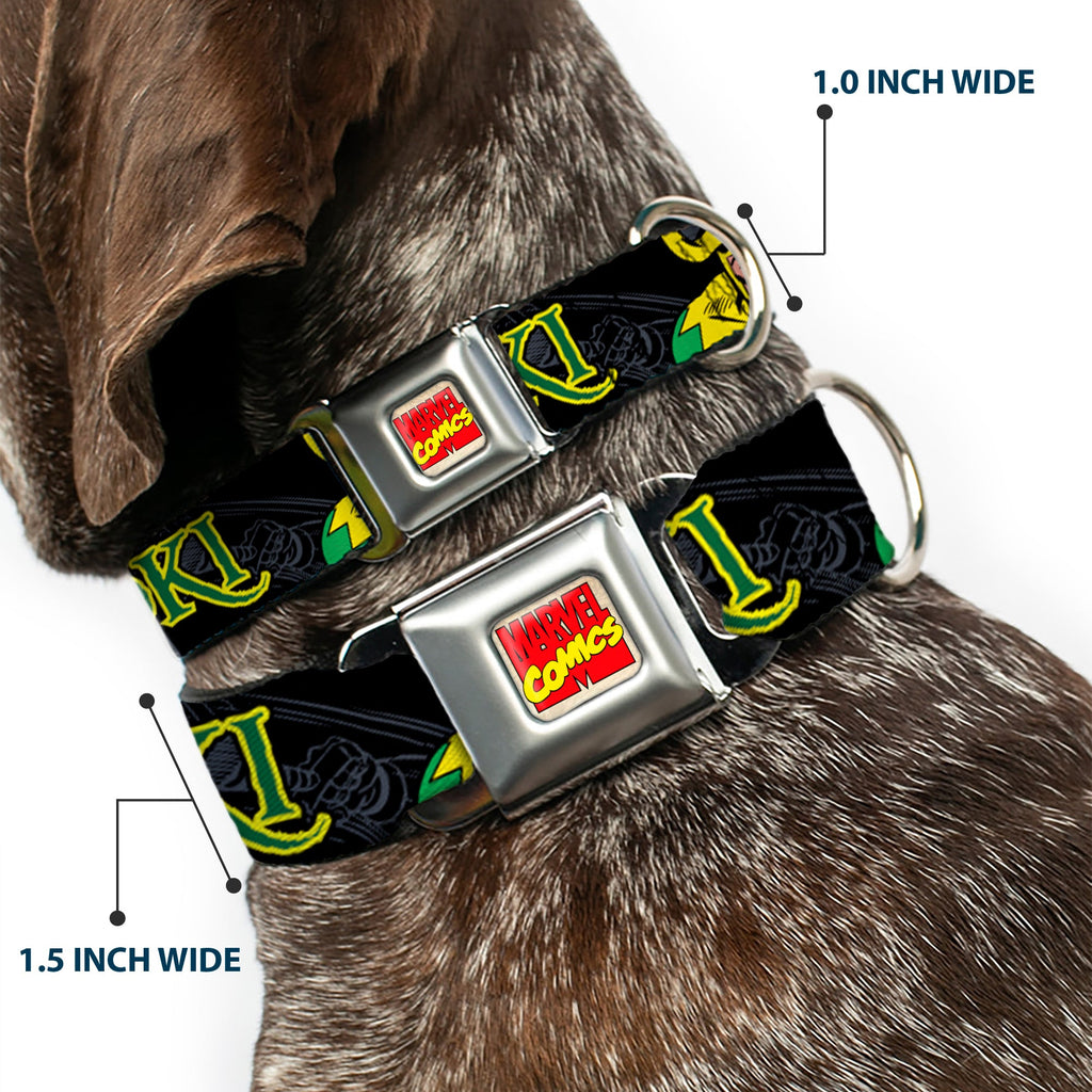 MARVEL COMICS Marvel Comics Logo Full Color Seatbelt Buckle Collar - LOKI in Action Black/Gray/Yellow/Green