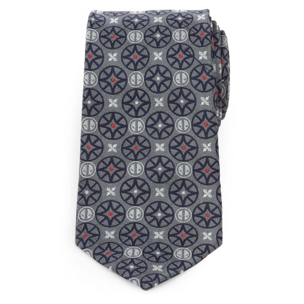 Ready to elevate your wardrobe but not willing to sacrifice your fandom? Look no further than this sumptuous 100% silk patterned tie. With patterns of stained navy glass circles intersected with discrete Deadpool mask logos and throwing ninja stars, it's an ideal addition to your formal wardrobe. Officially licensed by Marvel.