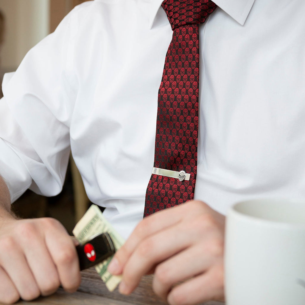 Like the iridescent glow from a spider's back, this slim tie seems to change color in the light from bright crimson to blood red. A backdrop of black thread forms the remaining pattern, and the careful stitching allows for a smooth knot. This 100% silk tie also features the Marvel Comics logo on the reverse. Officially licensed by Marvel.