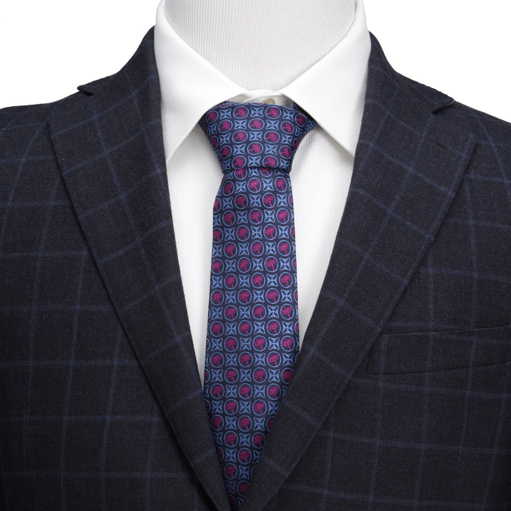 Throw it, slam it, or fly with it: any way you wield it, you have to agree that Thor's hammer is an epic piece of kit. Look closely at this 100% silk navy tie and you'll find hundred of miniature hammers showcased in rich plum purple stitching, and a Marvel logo picked out in black and white on the back. Officially licensed by Marvel.