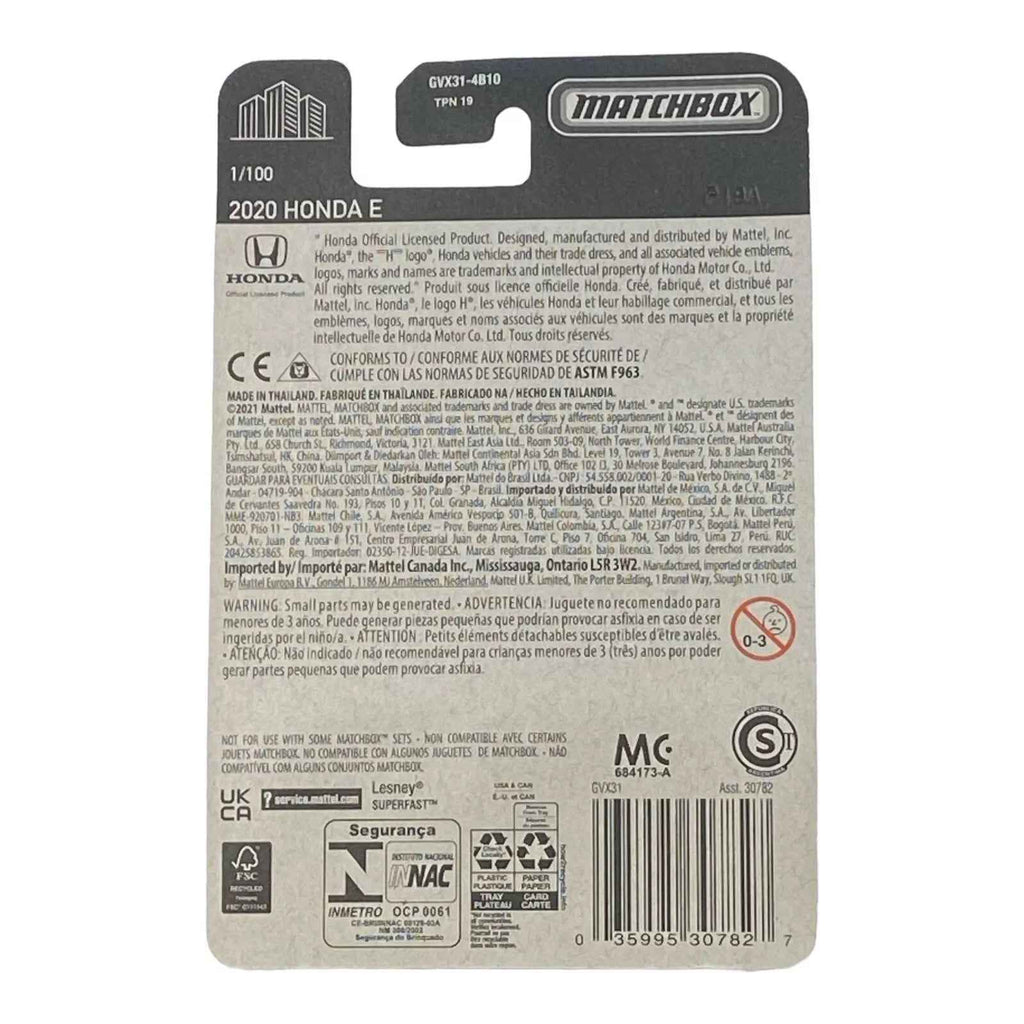 Collectors often appreciate the Matchbox 2020 Honda E for its iconic representation of the brand, merged with Matchbox's long-standing legacy of producing quality die-cast cars. As this model joins the Matchbox Series 1/100, it provides a balance of nostalgia and modernity in one package.