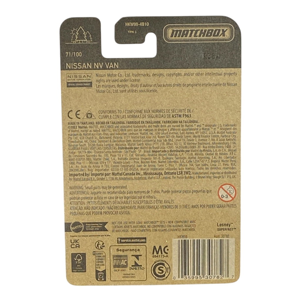 The Matchbox Nissan NV Van is a remarkable addition to your die-cast vehicle collection, celebrating 70 years of Matchbox's legacy. This iconic van isn't just a toy; it's a miniature representation of Nissan's commitment to innovation, durability, and functionality. The Matchbox Nissan NV Van showcases exquisite detailing and craftsmanship that bring this vehicle to life in your hands. Whether you’re a passionate collector or just looking for a unique gift, this van promises to delight enthusiasts of all ages.