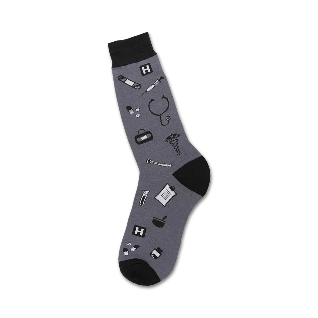 Socks Got Your Back! These fun and comfy dark gray socks are covered in bright medical symbols. Imagine stethoscopes, syringes, and thermometers marching across your feet. Whether you're a medical pro, a student, or just a fan of all things scrubs, you'll love showing off your passion. Who knows, they might even inspire you to become the next great doctor, discover a cure for the common cold, or invent a revolutionary new medical device. Plus, if you lose your real stethoscope, you'll always have a backup on your feet. Grab a pair today and show the world that you're a nurse and proud.