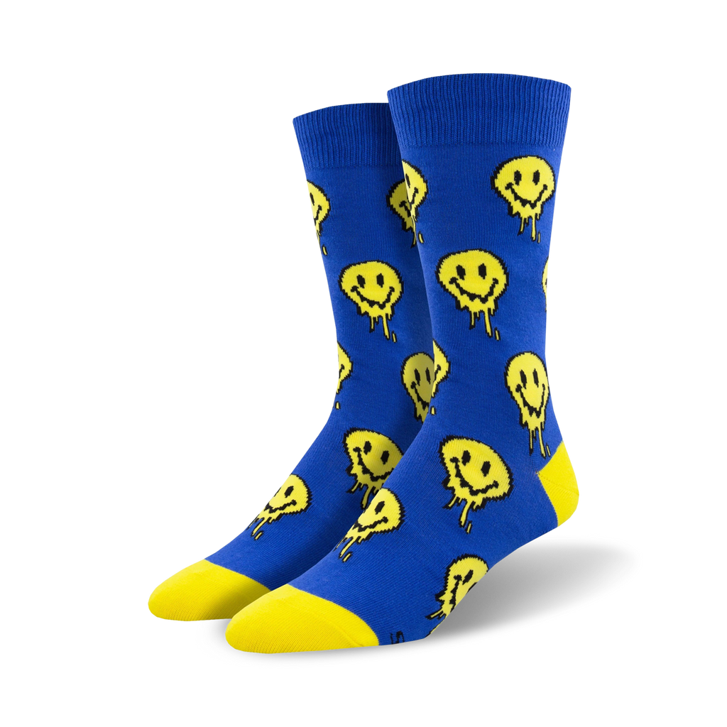 Who says socks have to be dull and boring? With these "Melting Smiles" socks, say goodbye to frown town and hello to funky feet! These smile-inducing socks feature a vibrant parade of cheerful yellow smiley faces melting their way up your legs. Prepare to spread smiles wherever you go, because these socks are sure to turn heads and bring a grin to everyone's face.